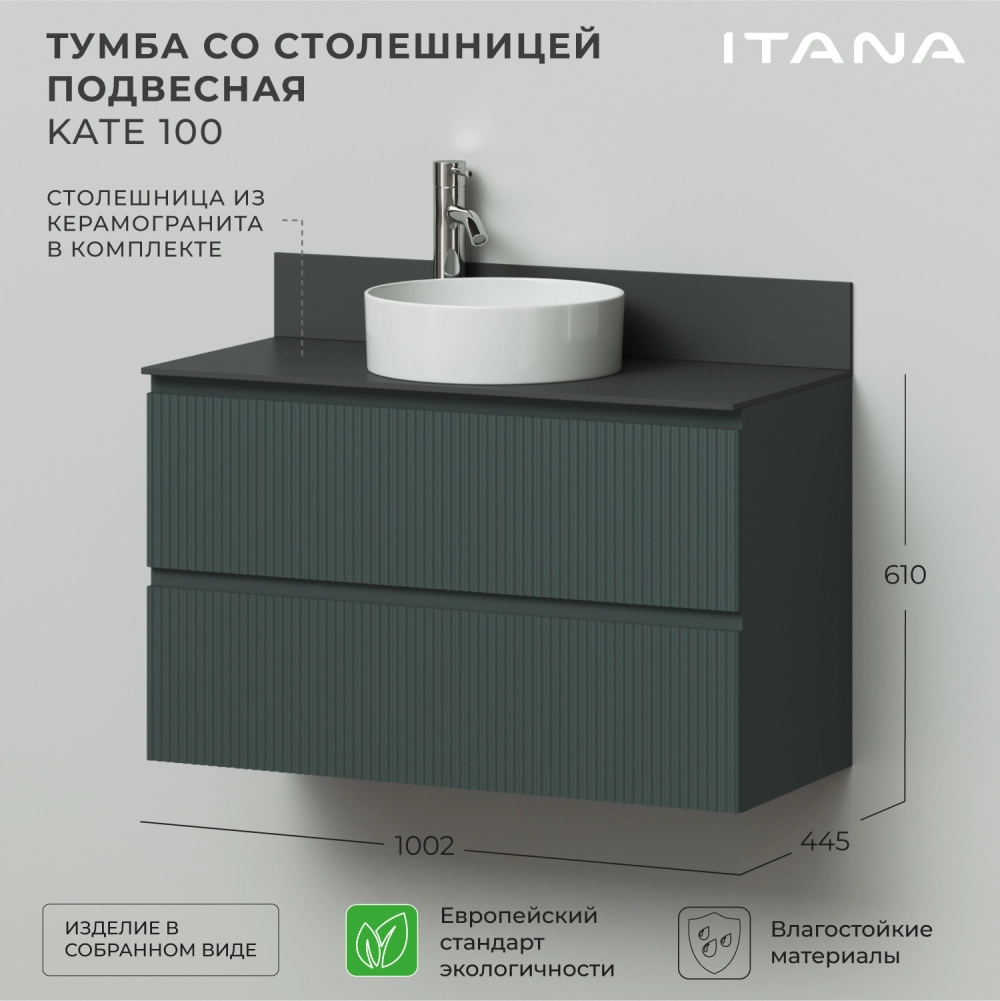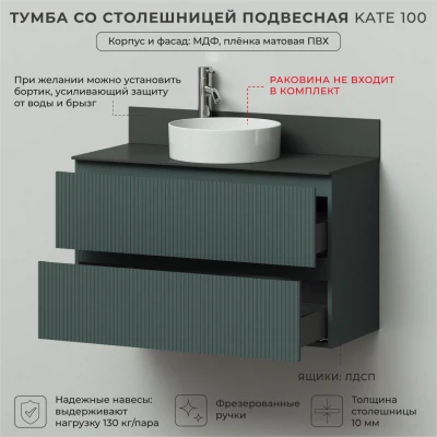 Тумба со столешницей подвесная Итана Kate 100 с выдвижными ящиками Велютто Авокадо