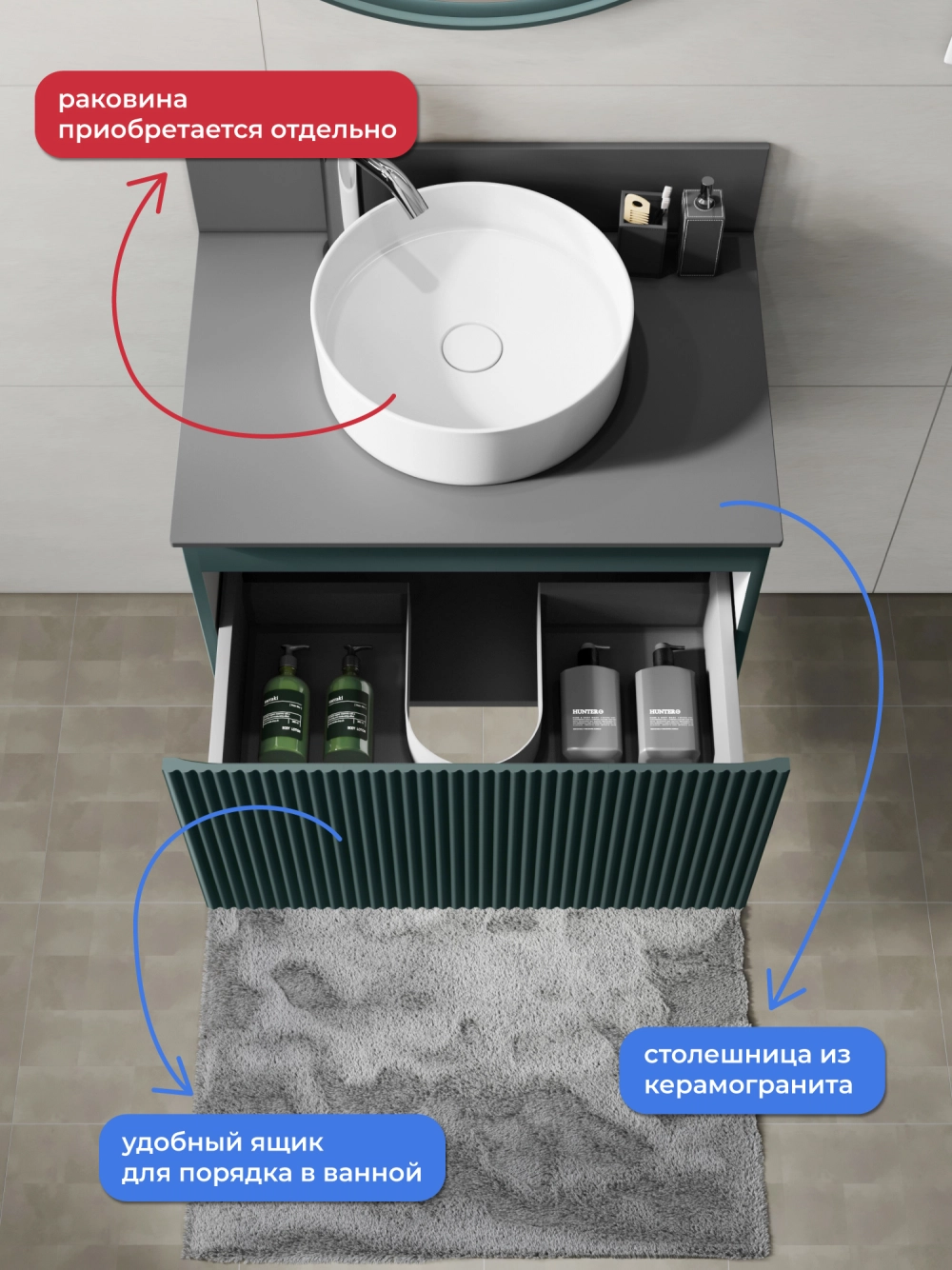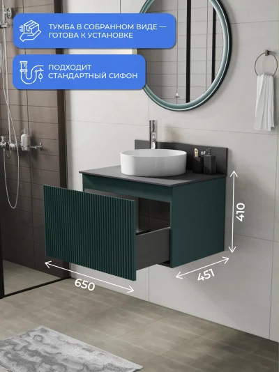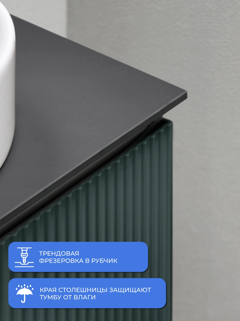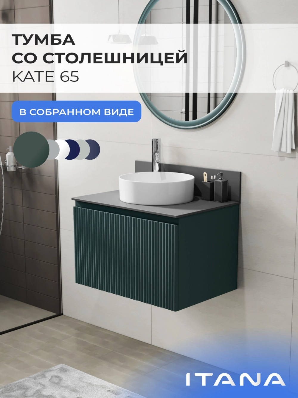 Подвесная тумба со столешницей Итана Kate 65 станет идеальным дополнением для вашей ванной комнаты, сочетая в себе стильный дизайн и функциональность. Коллекция Kate - воплотила в себе тренд на фактурные фасады. Идеальный "рубчик" - простое и стильное дизайнерское решение для декорирования фасадов - эта мебель бесспорно станет украшением современной ванной комнаты. Элегантная подвесная конструкция позволяет максимально эффективно использовать пространство, создавая ощущение легкости и визуальной свободы в интерьере. Благодаря компактным габаритам тумба идеально подходит даже для небольших ванных комнат, при этом предоставляя достаточно места для хранения необходимых принадлежностей. Тумба изготовлена из высококачественных материалов, гарантируя долговечность и надежность эксплуатации. Удобные фрезерованные ручки, качественная фурнитура с доводчиками, вместительность - мы продумали все, чтобы тумба под раковину была не просто красивой, но еще и функциональной, приятной в использовании. Ее конструкция позволяет легко поддерживать порядок в ванной, ведь все мелочи будут аккуратно убраны. Столешница выполнена из керамогранита, обладая устойчивостью к механическим повреждениям и влиянию химических средств. Стильный декор тумбы со столешницей добавляет изюминку в общий дизайн, вписываясь в современные и классические интерьеры. Подвесная тумба для ванной Итана Kate 65 — это также безопасность и удобство в уборке, так как свободное пространство под ней позволяет легко очистить пол. Безупречное сочетание столешницы с тумбой подчеркивает общий стиль вашей ванной комнаты, делая ее уютной и функциональной. Для точного выбора тумбочки со столешницей в ванную комнату рекомендуем обратиться к схеме замеров, которая находится на фото в карточке товара, размеры изделия могут отличаться +/-1 см в связи со спецификой производства. Тумба для ванной доставляется в предварительно собранном виде, надежно упакована.