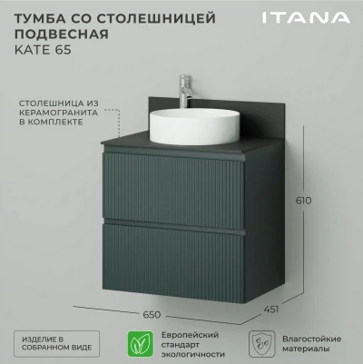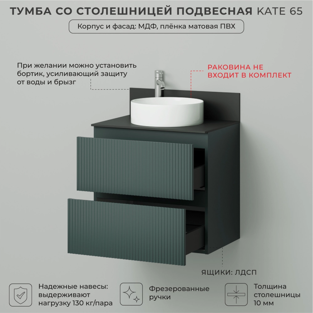 Тумба со столешницей подвесная Итана Kate 65 с выдвижными ящиками Велютто Авокадо
