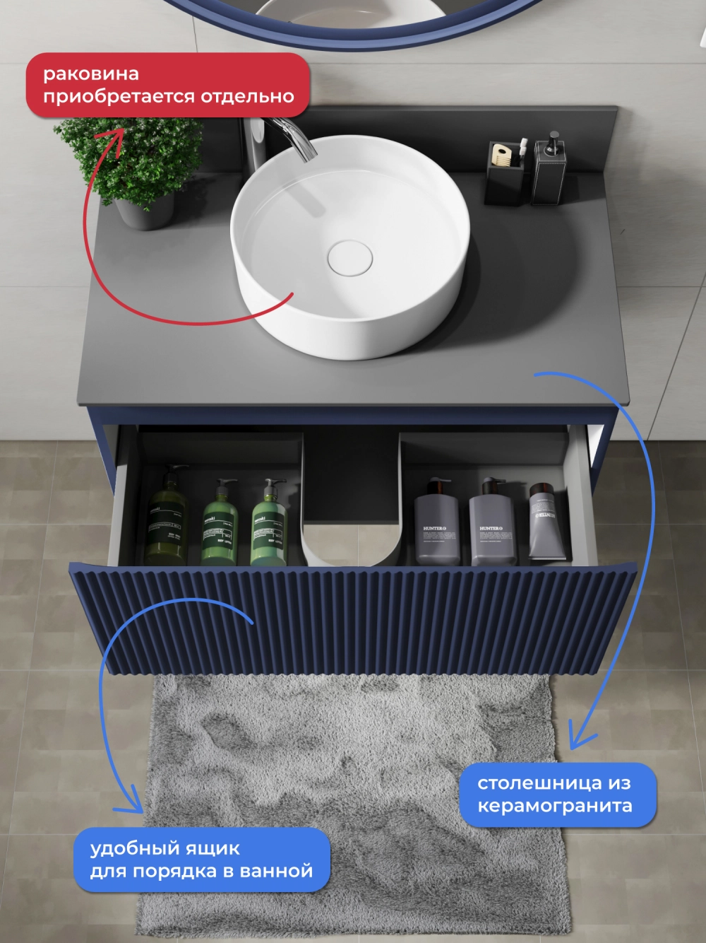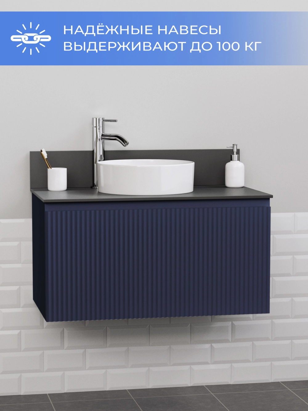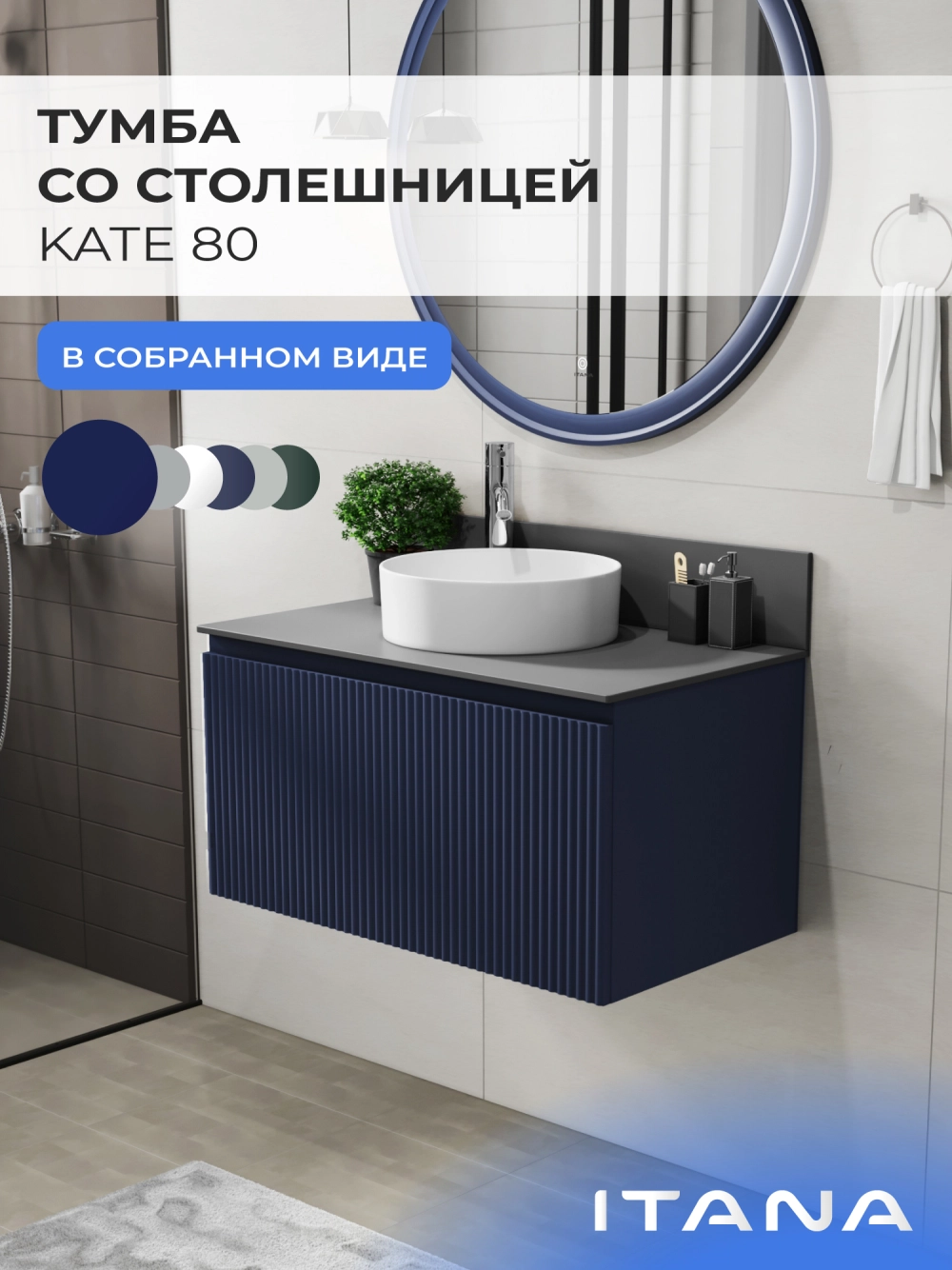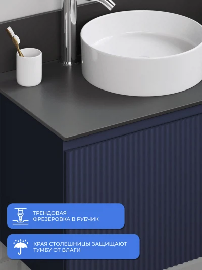 Подвесная тумба со столешницей Итана Kate 80 станет идеальным дополнением для вашей ванной комнаты, сочетая в себе стильный дизайн и функциональность. Коллекция Kate - воплотила в себе тренд на фактурные фасады. Идеальный "рубчик" - простое и стильное дизайнерское решение для декорирования фасадов - эта мебель бесспорно станет украшением современной ванной комнаты. Элегантная подвесная конструкция позволяет максимально эффективно использовать пространство, создавая ощущение легкости и визуальной свободы в интерьере. Благодаря компактным габаритам тумба идеально подходит даже для небольших ванных комнат, при этом предоставляя достаточно места для хранения необходимых принадлежностей. Тумба изготовлена из высококачественных материалов, гарантируя долговечность и надежность эксплуатации. Удобные фрезерованные ручки, качественная фурнитура с доводчиками, вместительность - мы продумали все, чтобы тумба под раковину была не просто красивой, но еще и функциональной, приятной в использовании. Ее конструкция позволяет легко поддерживать порядок в ванной, ведь все мелочи будут аккуратно убраны. Столешница выполнена из керамогранита, обладая устойчивостью к механическим повреждениям и влиянию химических средств. Стильный декор тумбы со столешницей добавляет изюминку в общий дизайн, вписываясь в современные и классические интерьеры. Подвесная тумба для ванной Итана Kate 80 — это также безопасность и удобство в уборке, так как свободное пространство под ней позволяет легко очистить пол. Безупречное сочетание столешницы с тумбой подчеркивает общий стиль вашей ванной комнаты, делая ее уютной и функциональной. Для точного выбора тумбочки со столешницей в ванную комнату рекомендуем обратиться к схеме замеров, которая находится на фото в карточке товара, размеры изделия могут отличаться +/-1 см в связи со спецификой производства. Тумба для ванной доставляется в предварительно собранном виде, надежно упакована.