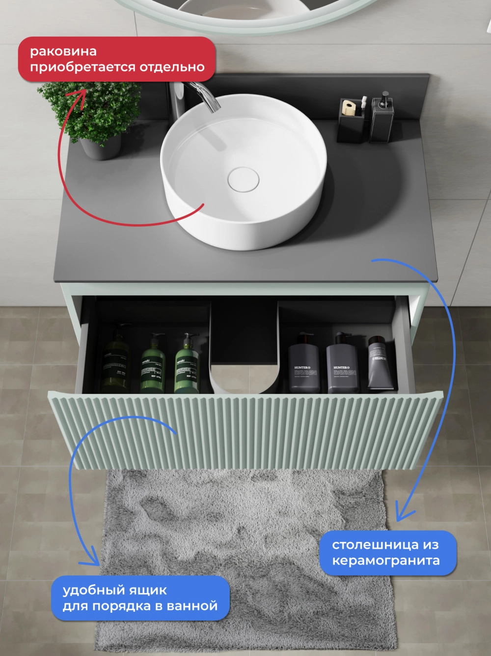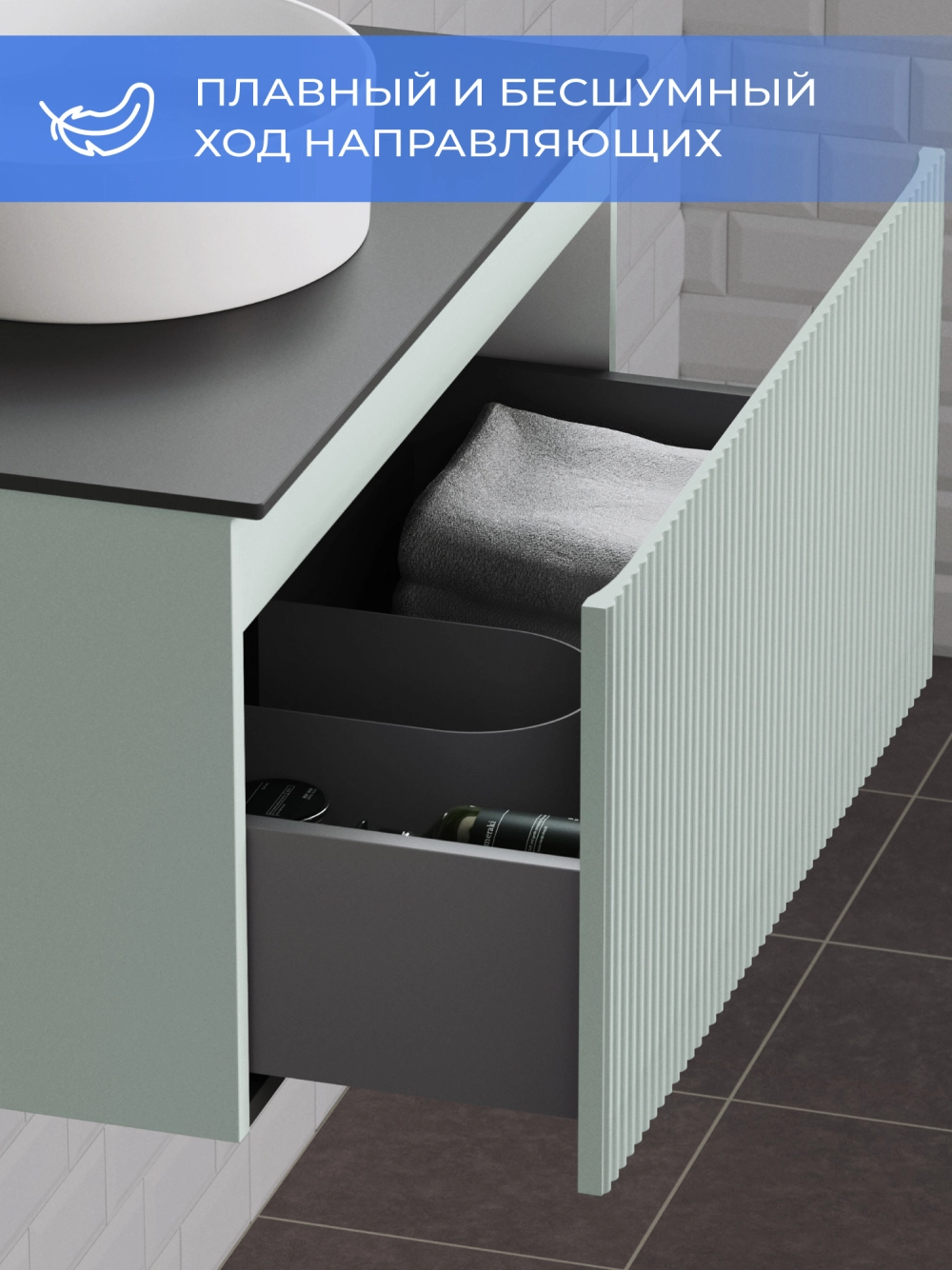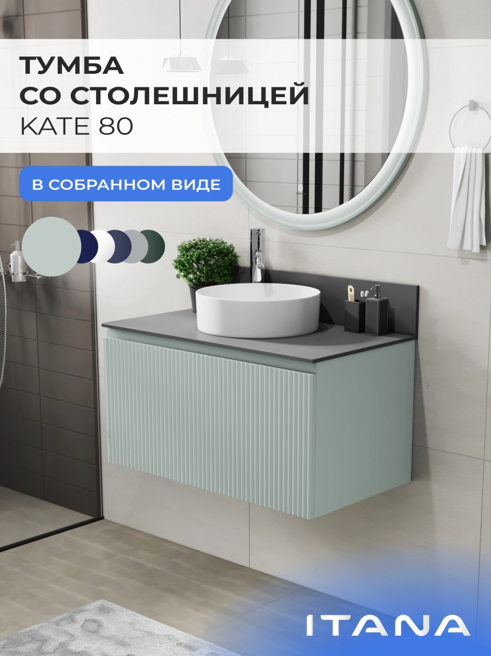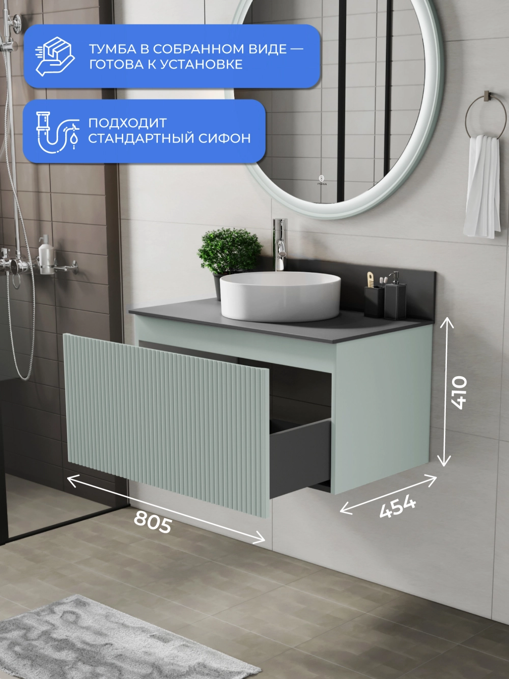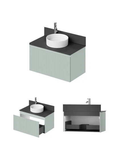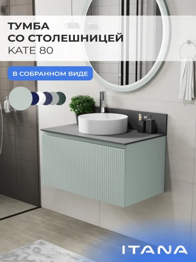 Подвесная тумба со столешницей Итана Kate 80 станет идеальным дополнением для вашей ванной комнаты, сочетая в себе стильный дизайн и функциональность. Коллекция Kate - воплотила в себе тренд на фактурные фасады. Идеальный "рубчик" - простое и стильное дизайнерское решение для декорирования фасадов - эта мебель бесспорно станет украшением современной ванной комнаты. Элегантная подвесная конструкция позволяет максимально эффективно использовать пространство, создавая ощущение легкости и визуальной свободы в интерьере. Благодаря компактным габаритам тумба идеально подходит даже для небольших ванных комнат, при этом предоставляя достаточно места для хранения необходимых принадлежностей. Тумба изготовлена из высококачественных материалов, гарантируя долговечность и надежность эксплуатации. Удобные фрезерованные ручки, качественная фурнитура с доводчиками, вместительность - мы продумали все, чтобы тумба под раковину была не просто красивой, но еще и функциональной, приятной в использовании. Ее конструкция позволяет легко поддерживать порядок в ванной, ведь все мелочи будут аккуратно убраны. Столешница выполнена из керамогранита, обладая устойчивостью к механическим повреждениям и влиянию химических средств. Стильный декор тумбы со столешницей добавляет изюминку в общий дизайн, вписываясь в современные и классические интерьеры. Подвесная тумба для ванной Итана Kate 80 — это также безопасность и удобство в уборке, так как свободное пространство под ней позволяет легко очистить пол. Безупречное сочетание столешницы с тумбой подчеркивает общий стиль вашей ванной комнаты, делая ее уютной и функциональной. Для точного выбора тумбочки со столешницей в ванную комнату рекомендуем обратиться к схеме замеров, которая находится на фото в карточке товара, размеры изделия могут отличаться +/-1 см в связи со спецификой производства. Тумба для ванной доставляется в предварительно собранном виде, надежно упакована.