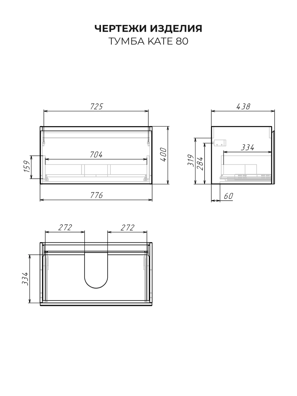 Тумба со столешницей подвесная Итана Kate 80 с выдвижным ящиком Токио
