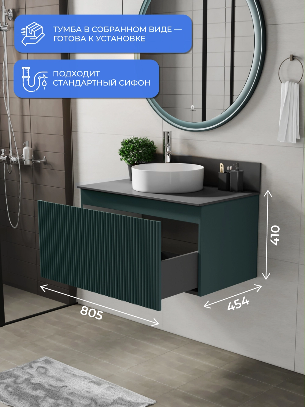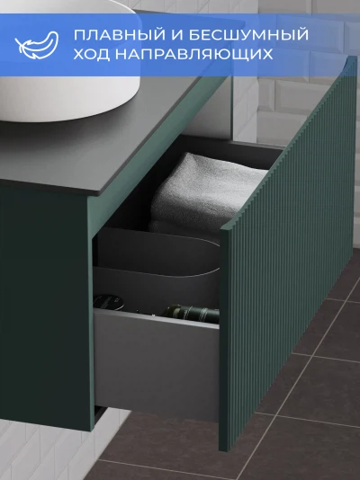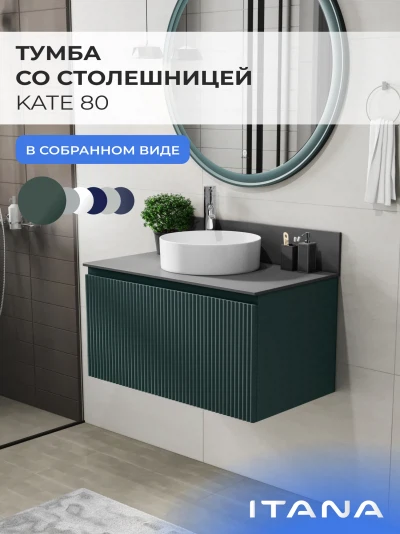 Подвесная тумба со столешницей Итана Kate 80 станет идеальным дополнением для вашей ванной комнаты, сочетая в себе стильный дизайн и функциональность. Коллекция Kate - воплотила в себе тренд на фактурные фасады. Идеальный "рубчик" - простое и стильное дизайнерское решение для декорирования фасадов - эта мебель бесспорно станет украшением современной ванной комнаты. Элегантная подвесная конструкция позволяет максимально эффективно использовать пространство, создавая ощущение легкости и визуальной свободы в интерьере. Благодаря компактным габаритам тумба идеально подходит даже для небольших ванных комнат, при этом предоставляя достаточно места для хранения необходимых принадлежностей. Тумба изготовлена из высококачественных материалов, гарантируя долговечность и надежность эксплуатации. Удобные фрезерованные ручки, качественная фурнитура с доводчиками, вместительность - мы продумали все, чтобы тумба под раковину была не просто красивой, но еще и функциональной, приятной в использовании. Ее конструкция позволяет легко поддерживать порядок в ванной, ведь все мелочи будут аккуратно убраны. Столешница выполнена из керамогранита, обладая устойчивостью к механическим повреждениям и влиянию химических средств. Стильный декор тумбы со столешницей добавляет изюминку в общий дизайн, вписываясь в современные и классические интерьеры. Подвесная тумба для ванной Итана Kate 80 — это также безопасность и удобство в уборке, так как свободное пространство под ней позволяет легко очистить пол. Безупречное сочетание столешницы с тумбой подчеркивает общий стиль вашей ванной комнаты, делая ее уютной и функциональной. Для точного выбора тумбочки со столешницей в ванную комнату рекомендуем обратиться к схеме замеров, которая находится на фото в карточке товара, размеры изделия могут отличаться +/-1 см в связи со спецификой производства. Тумба для ванной доставляется в предварительно собранном виде, надежно упакована.