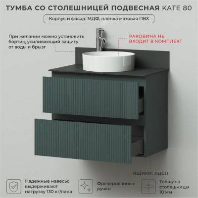 Тумба со столешницей подвесная Итана Kate 80 с выдвижными ящиками Велютто Авокадо