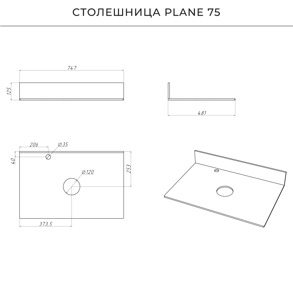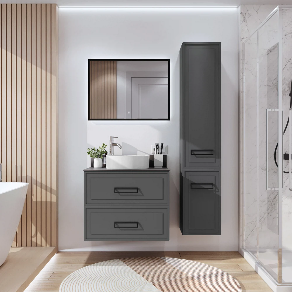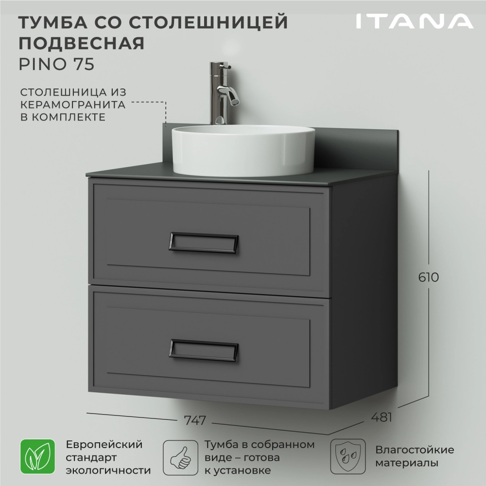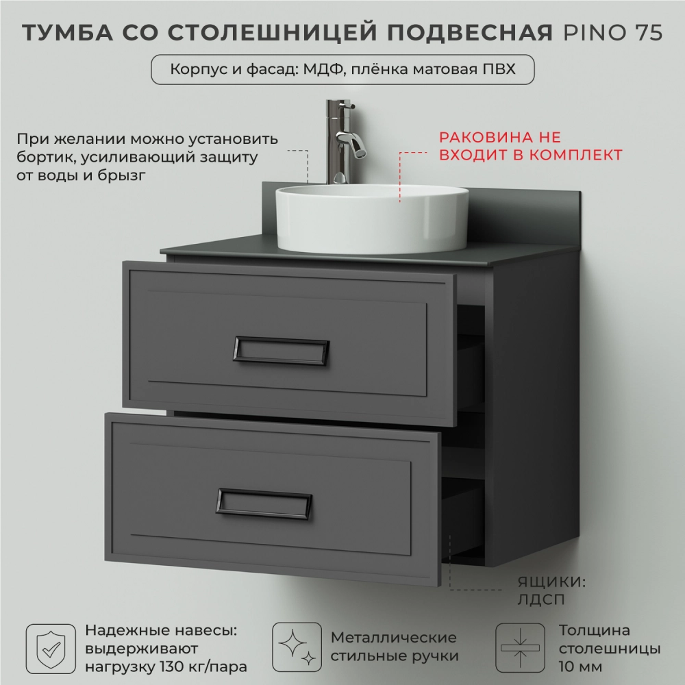 Тумба со столешницей подвесная Итана Pino 75 с выдвижными ящиками Графит