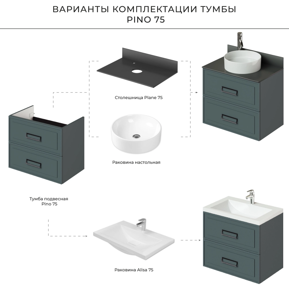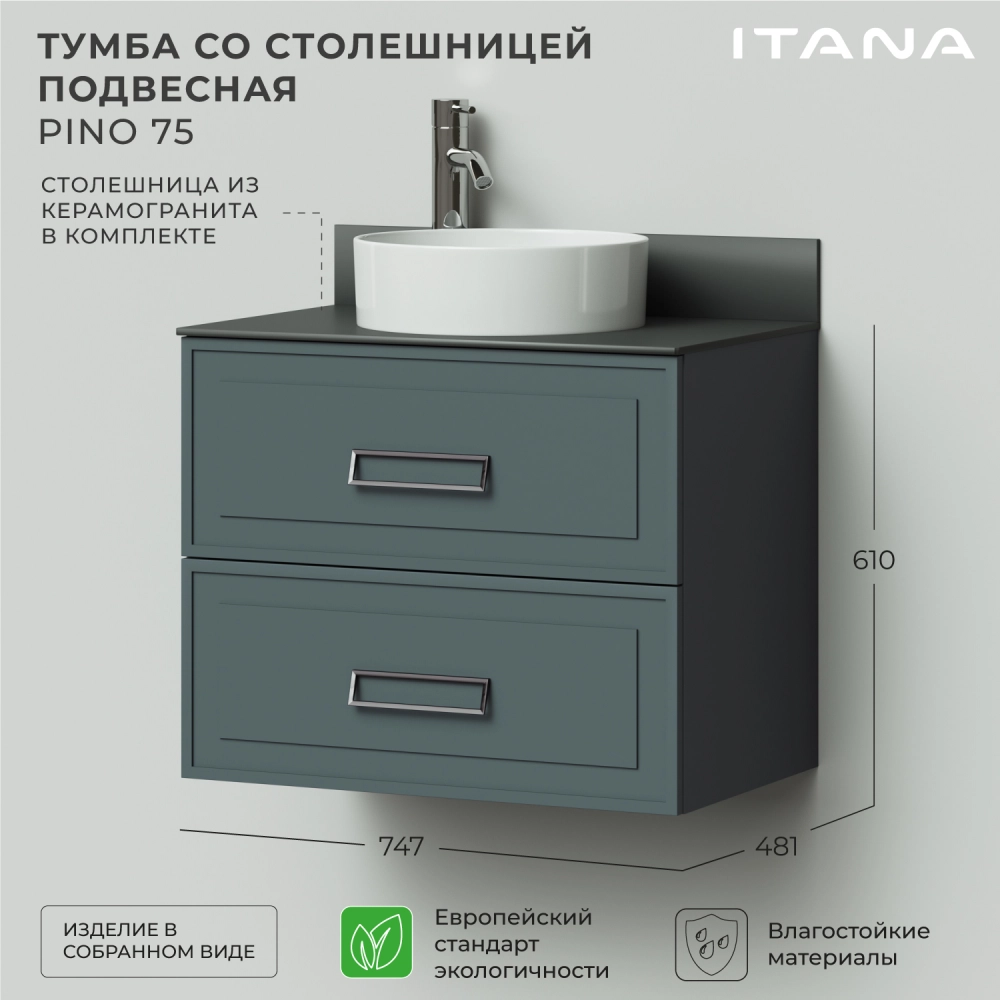 Тумба со столешницей подвесная Итана Pino 75 с выдвижными ящиками Веллюто Авокадо