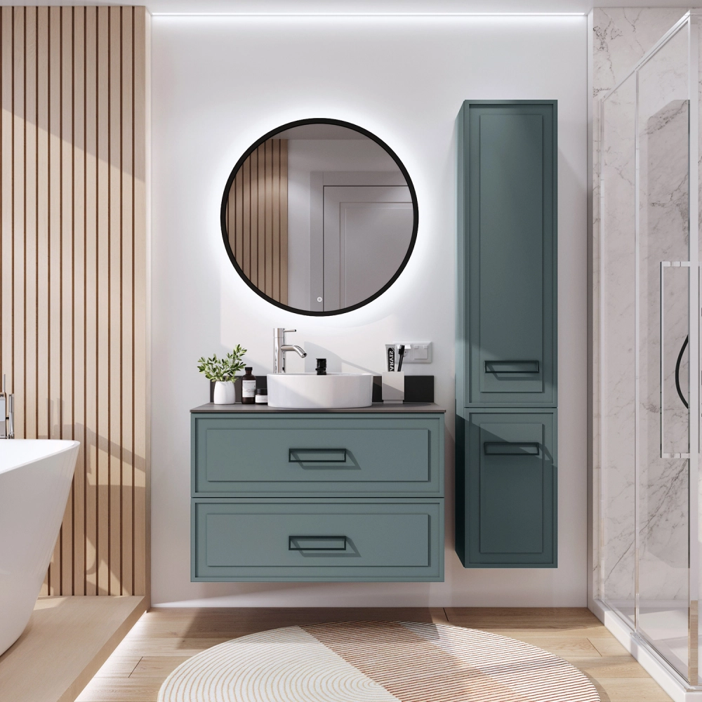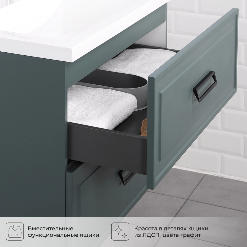 Тумба со столешницей подвесная Итана Pino 90 с выдвижными ящиками Веллюто Авокадо