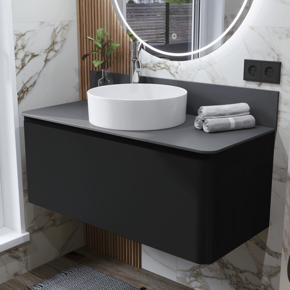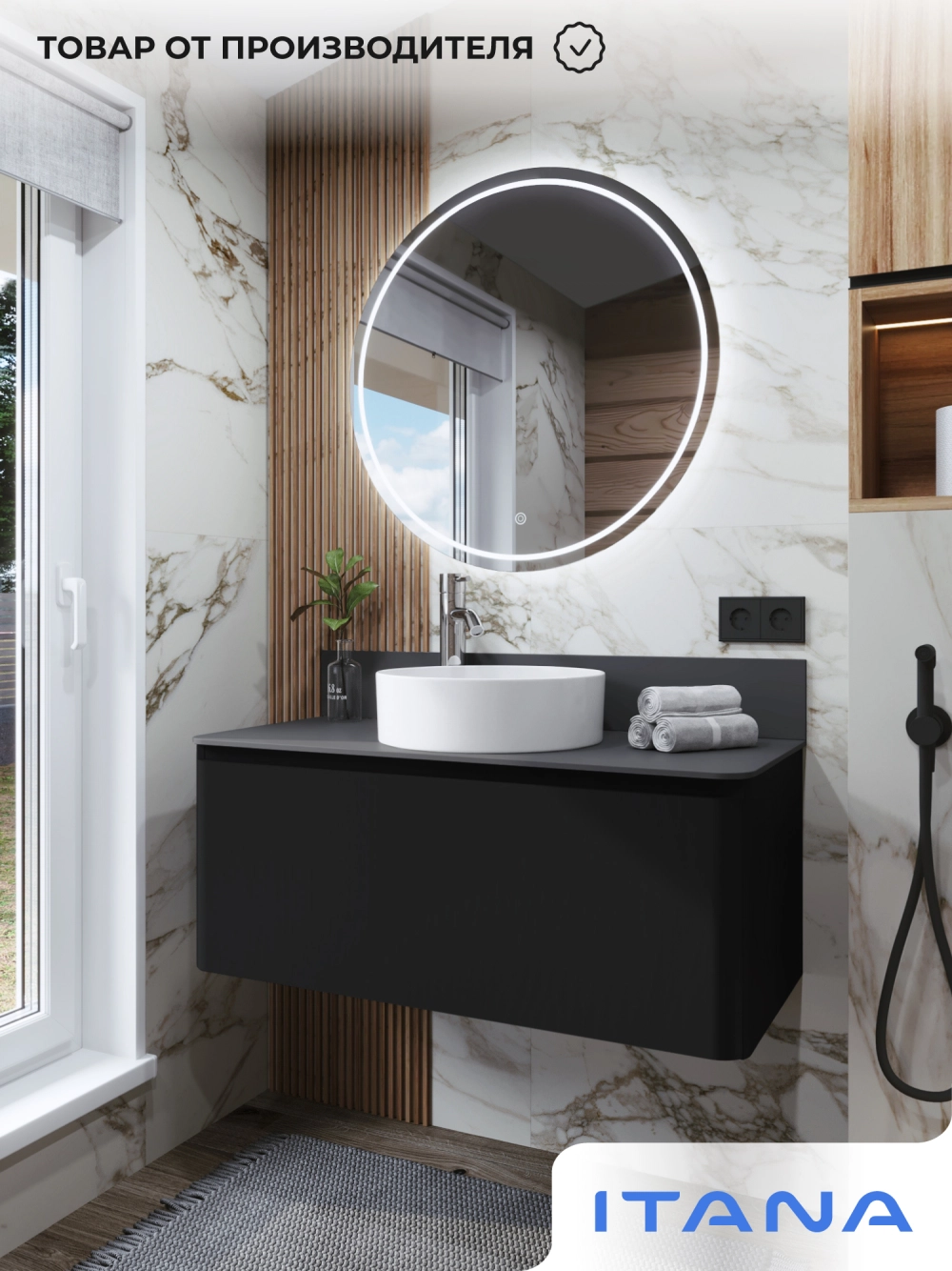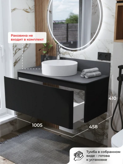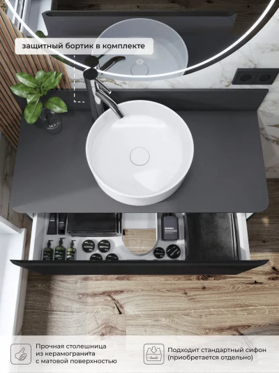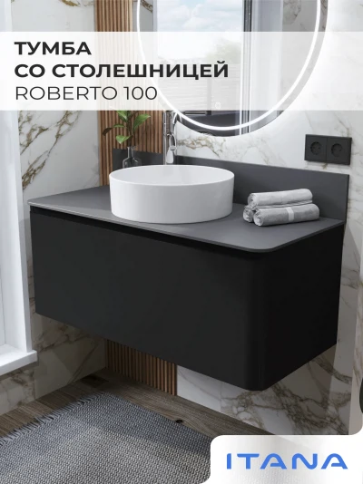 Тумба со столешницей подвесная Итана Roberto 100 с выдвижным ящиком Черный софт