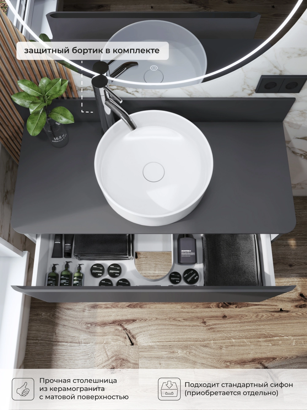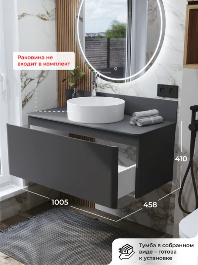 Тумба со столешницей подвесная Итана Roberto 100 с выдвижным ящиком Графит