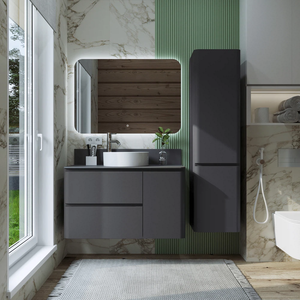 Тумба со столешницей подвесная Итана Roberto 100 с выдвижными ящиками Графит