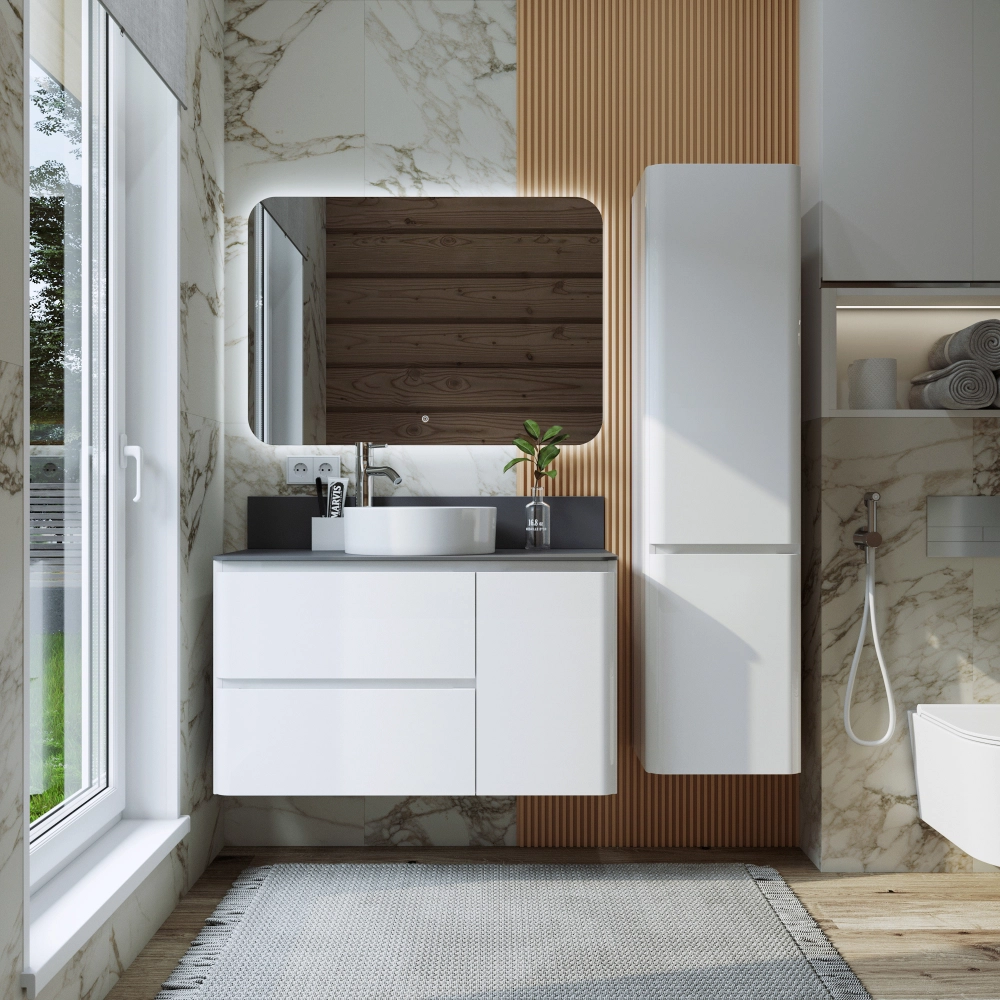 Тумба со столешницей подвесная Итана Roberto 100 с выдвижными ящиками Пленка Белый глянец