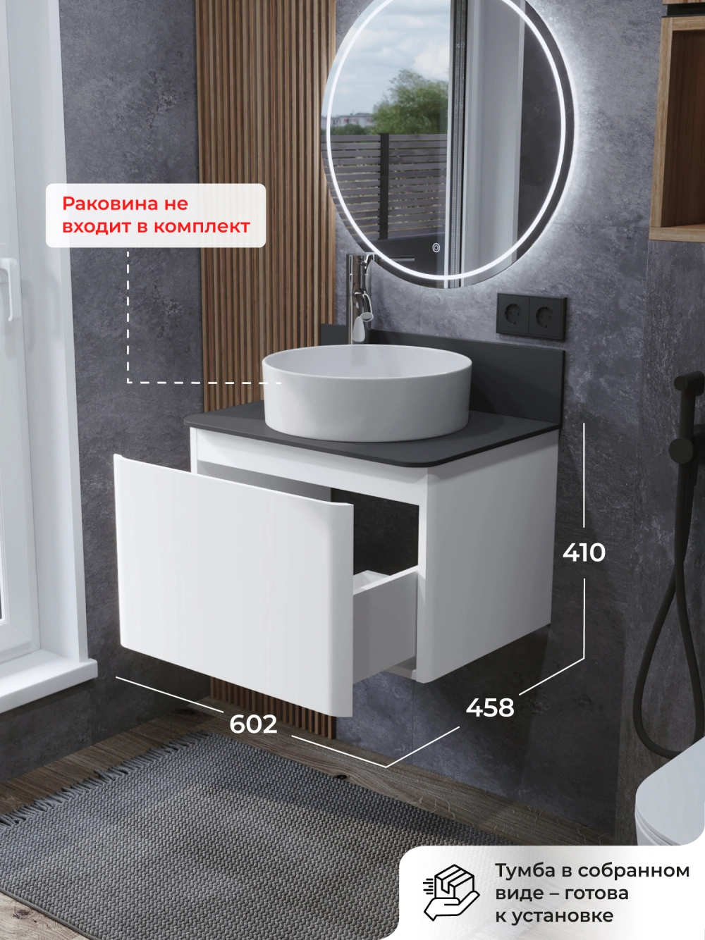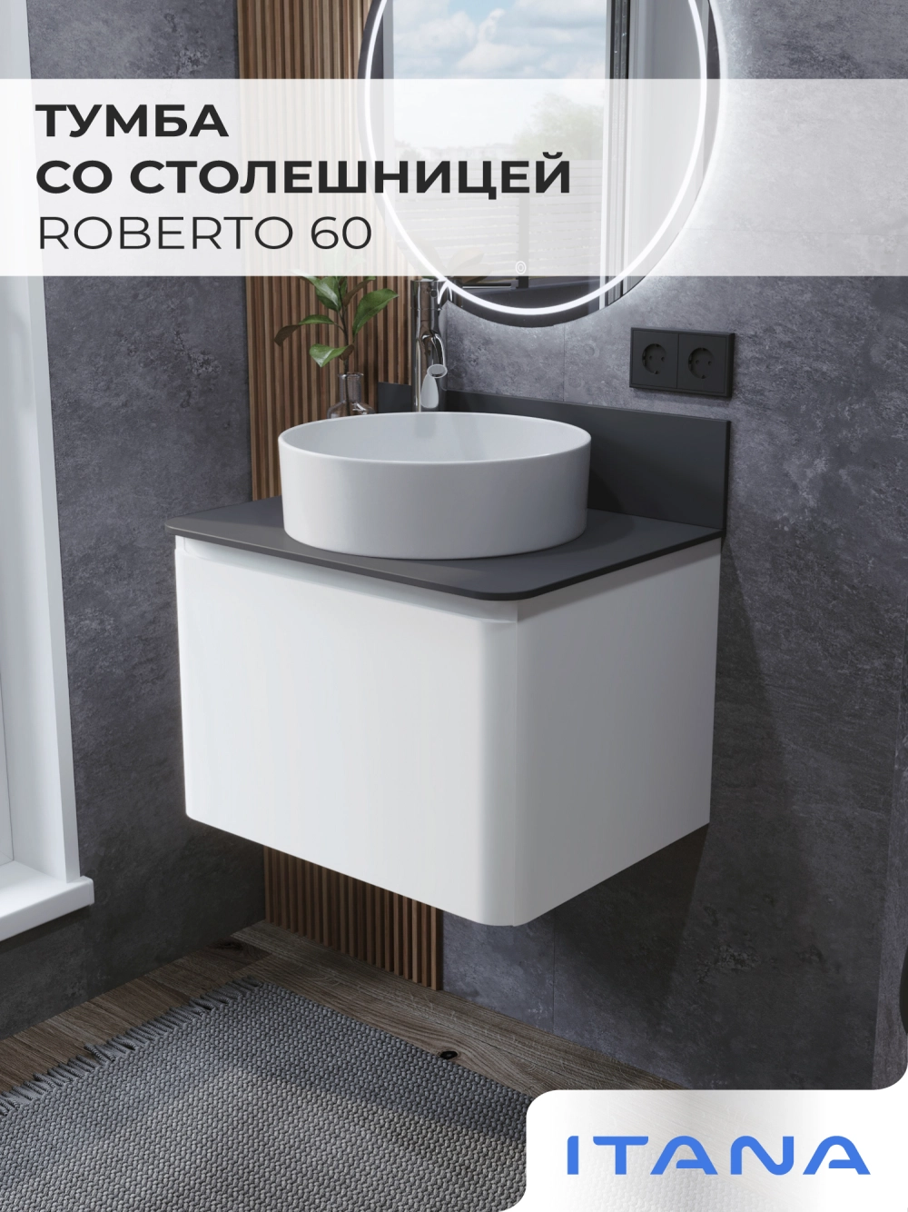 Тумба со столешницей подвесная Итана Roberto 60 с выдвижным ящиком Эмаль Белый Глянец