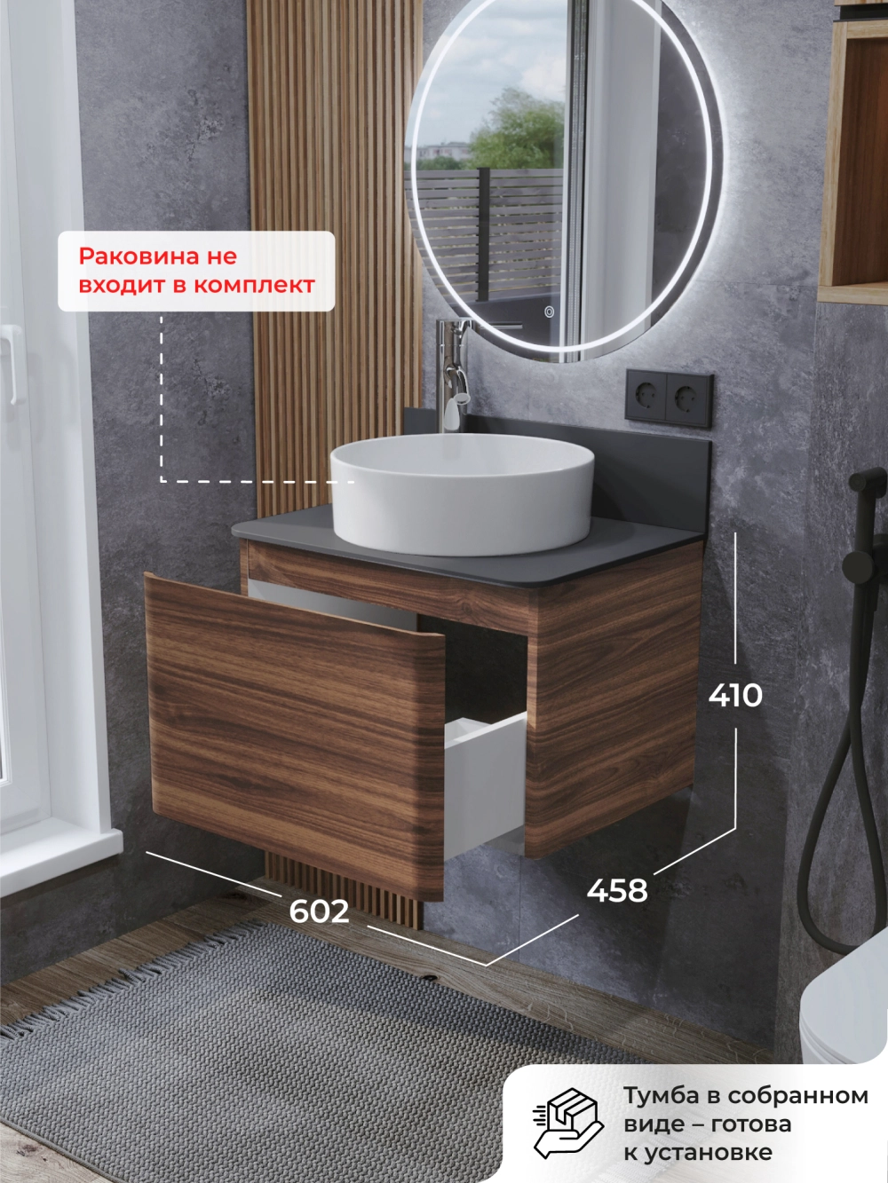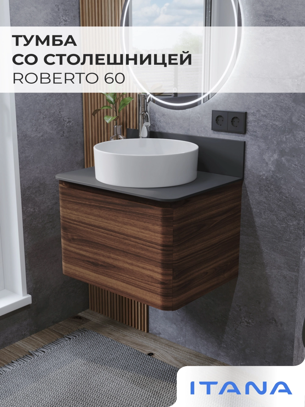 Тумба со столешницей подвесная Итана Roberto 60 с выдвижным ящиком Орех Пекан шоколад стронг