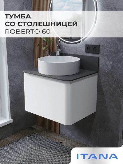 Тумба со столешницей подвесная Итана Roberto 60 с выдвижным ящиком Пленка Белый глянец