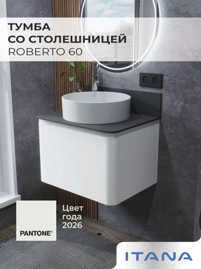 Тумба со столешницей подвесная Итана Roberto 60 с выдвижным ящиком Пленка Белый глянец