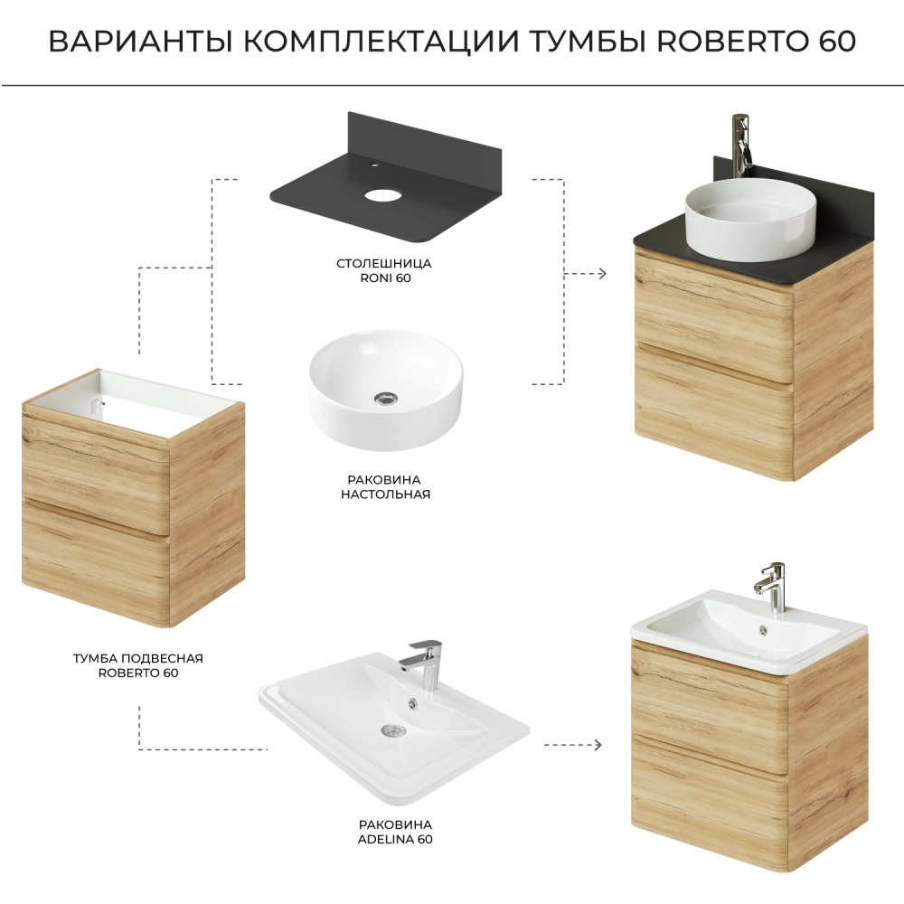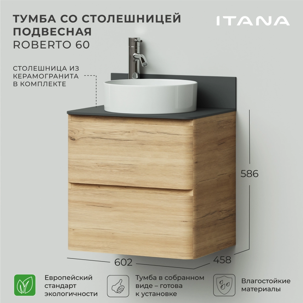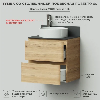 Тумба со столешницей подвесная Итана Roberto 60 с выдвижными ящиками Дуб Мавелла Голд