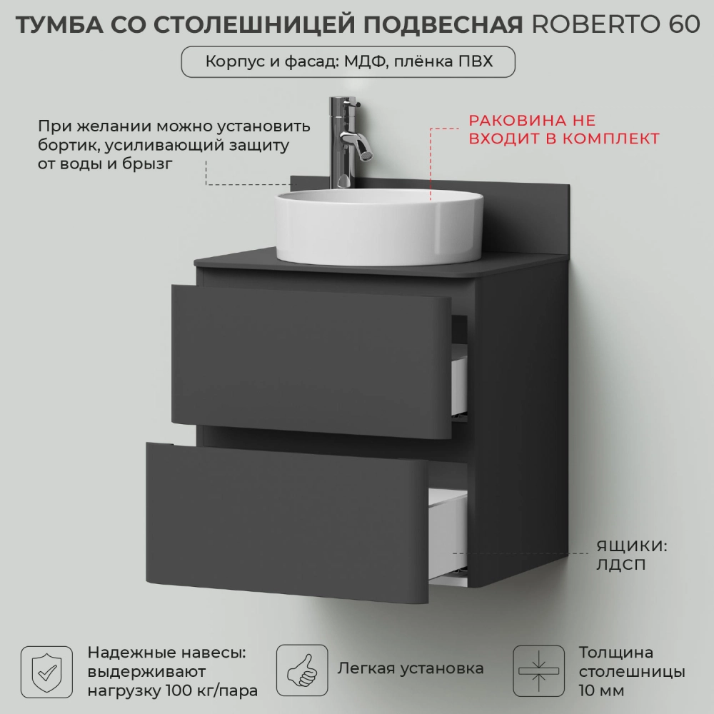 Тумба со столешницей подвесная Итана Roberto 60 с выдвижными ящиками Графит