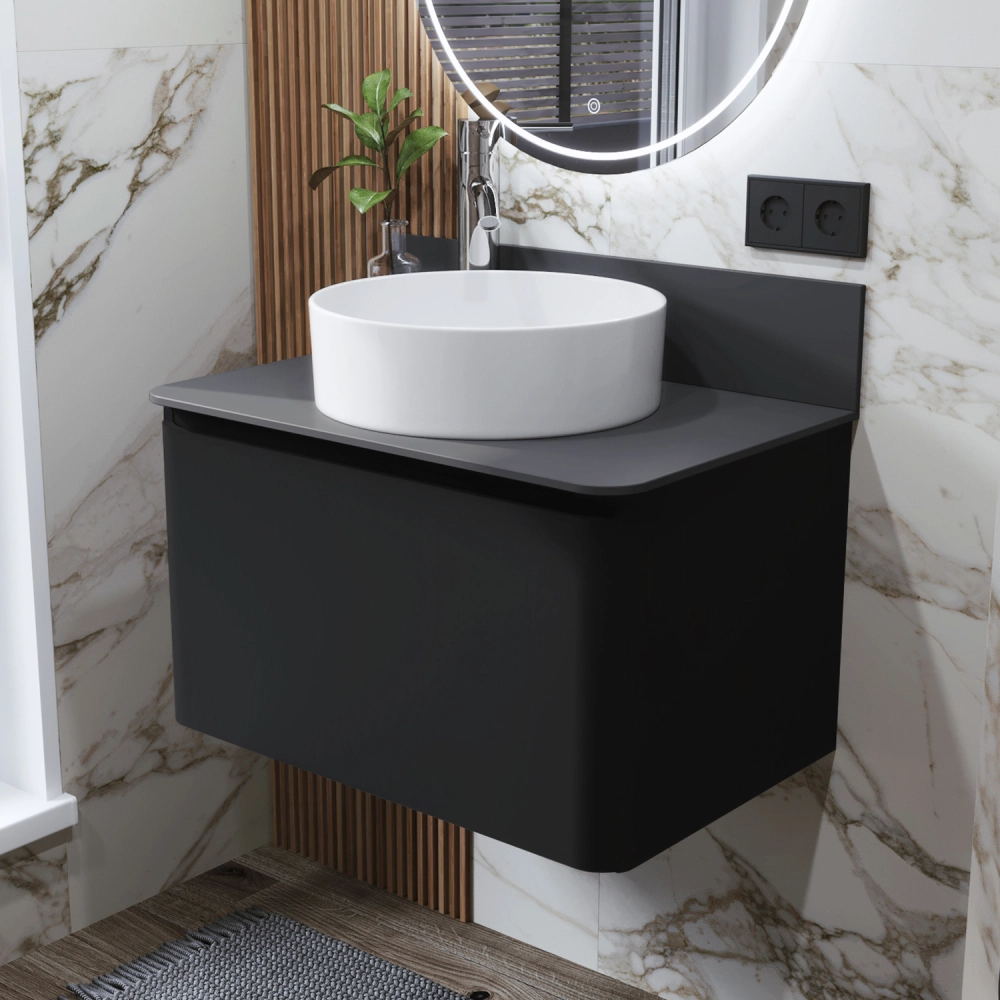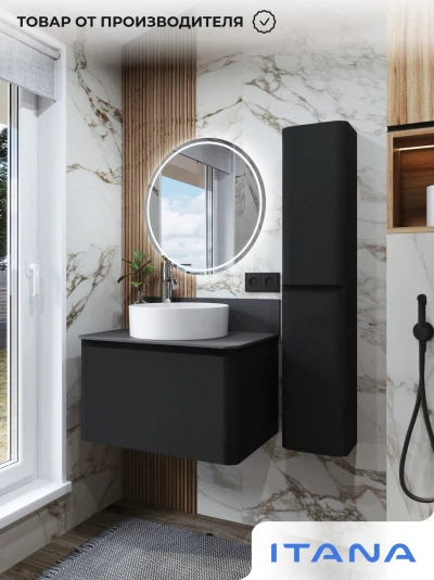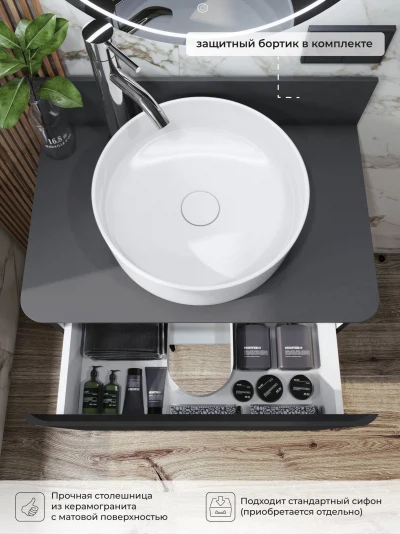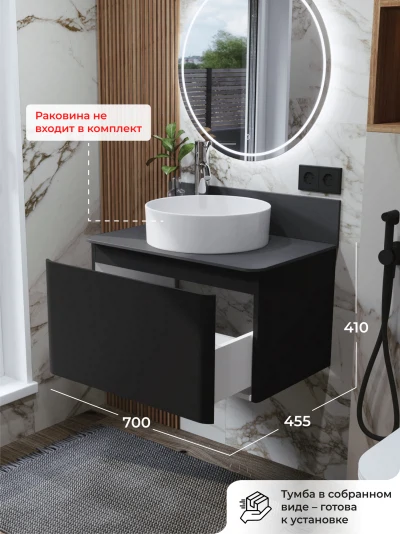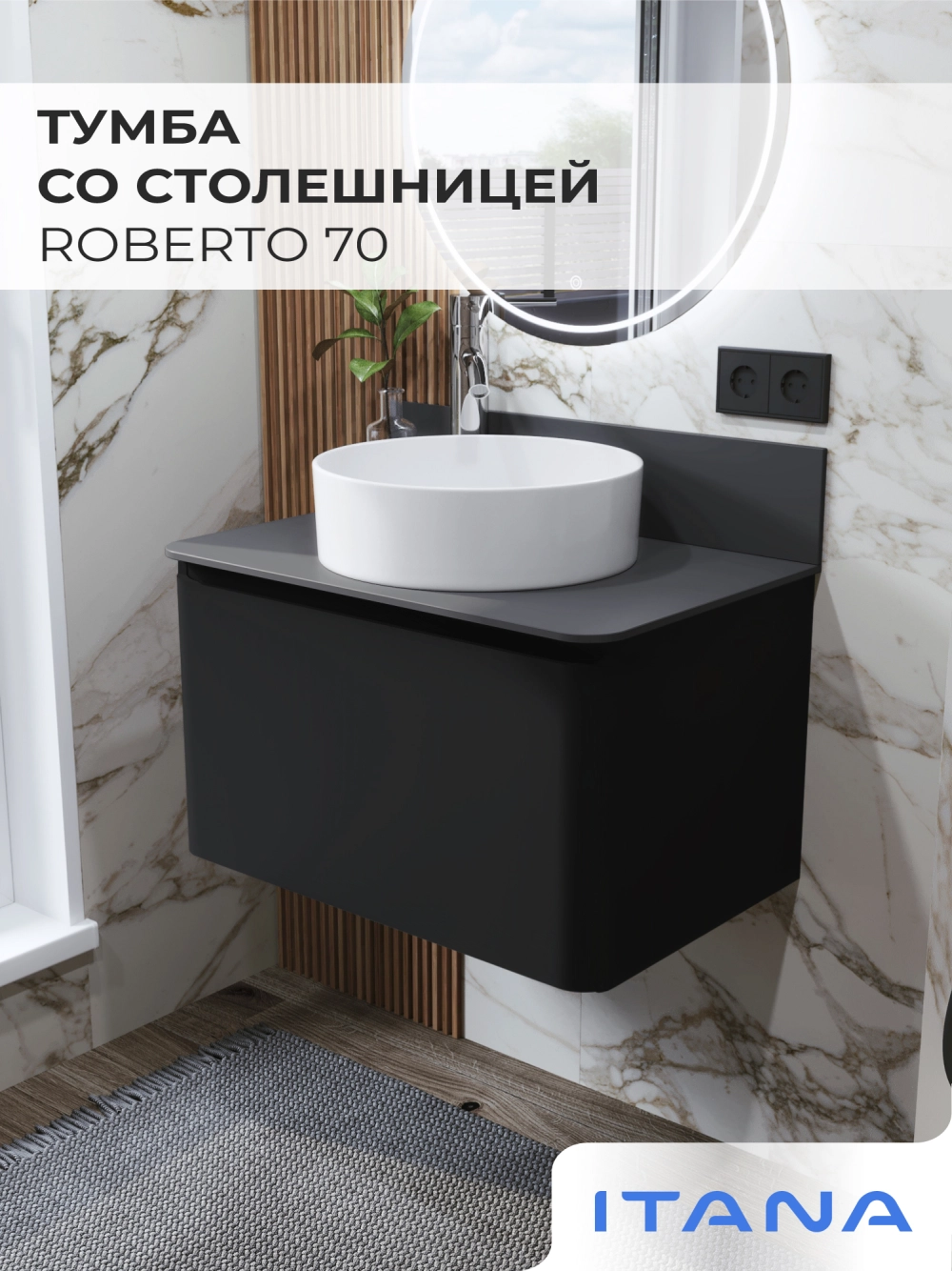 Тумба со столешницей подвесная Итана Roberto 70 с выдвижным ящиком Черный софт