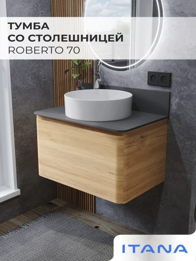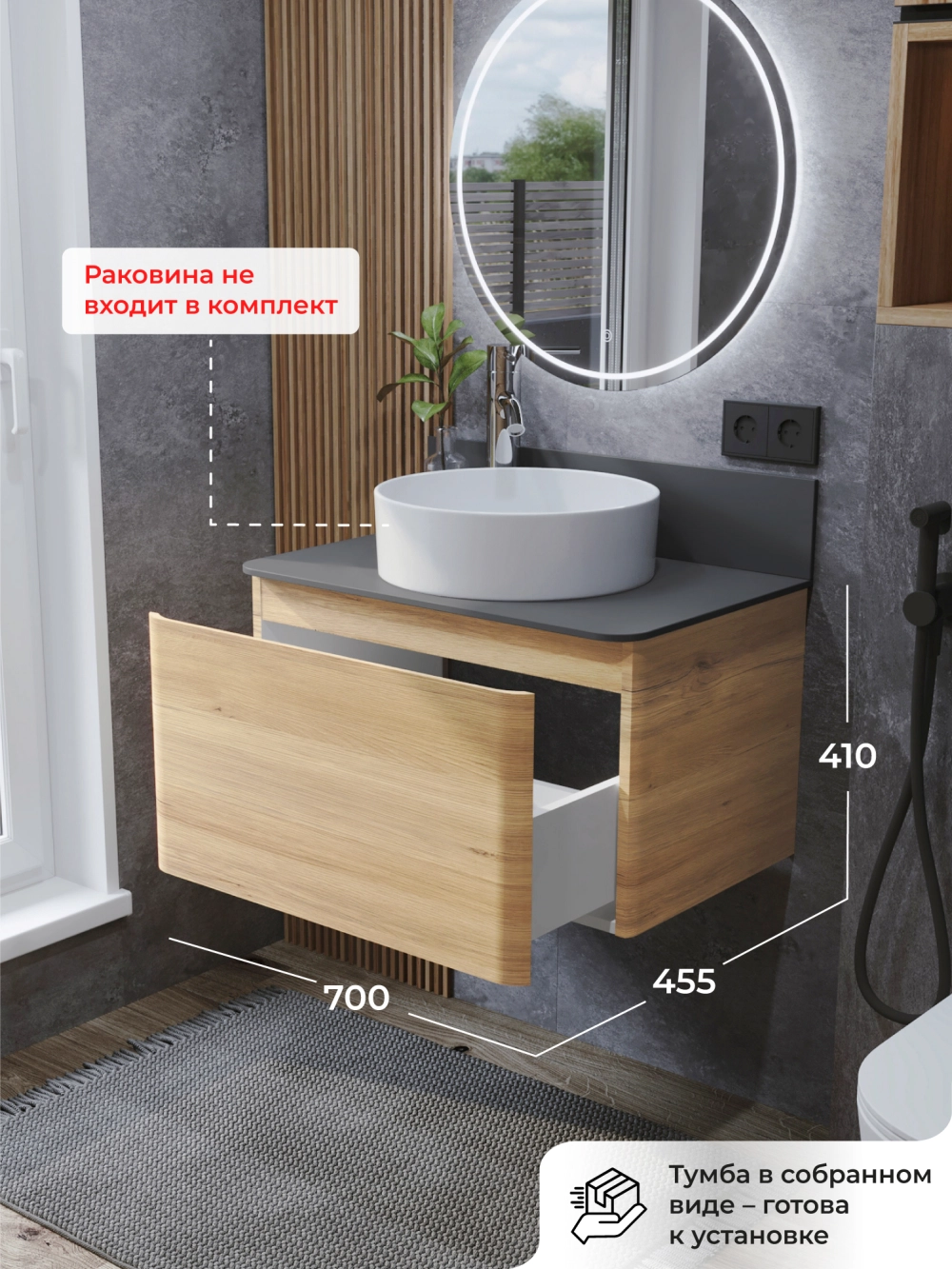 Тумба со столешницей подвесная Итана Roberto 70 с выдвижным ящиком Дуб Мавелла Голд