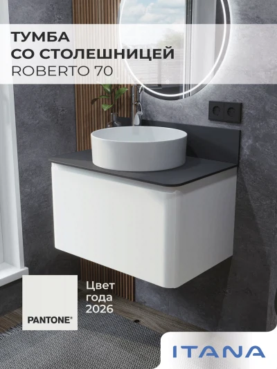 Тумба со столешницей подвесная Итана Roberto 70 с выдвижным ящиком Эмаль Белый Глянец