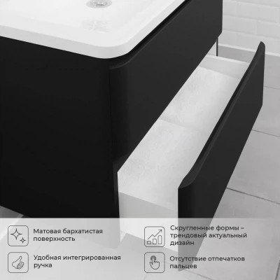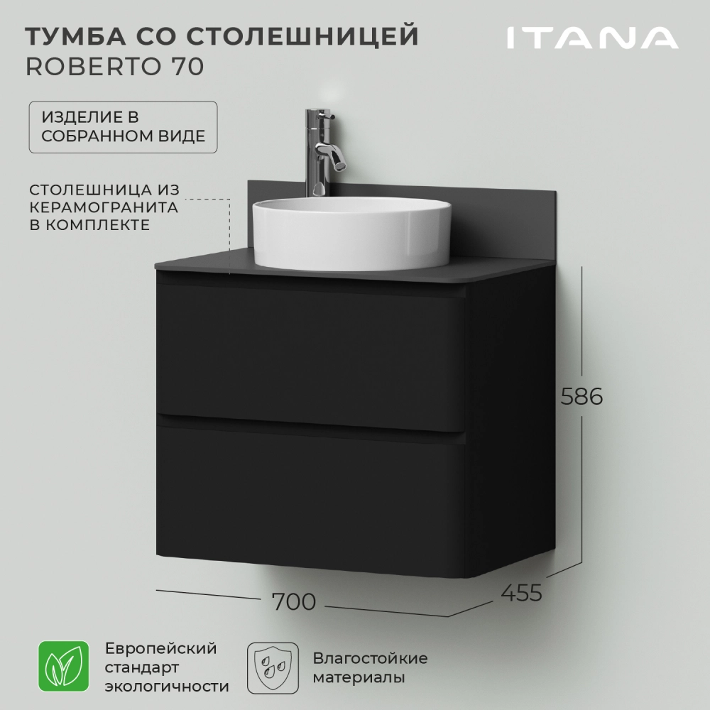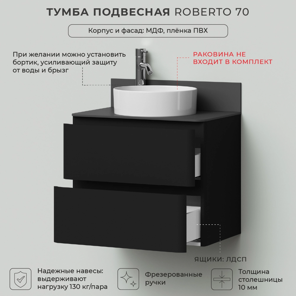 Тумба со столешницей подвесная Итана Roberto 70 с выдвижными ящиками Черный софт