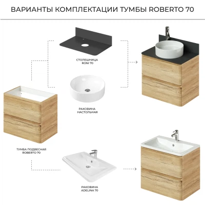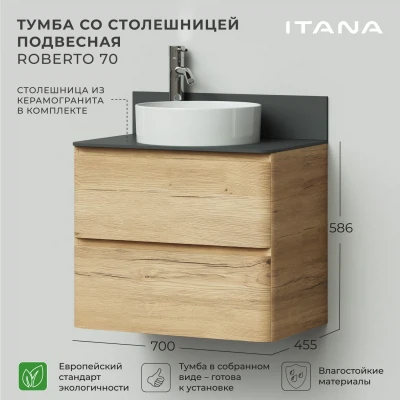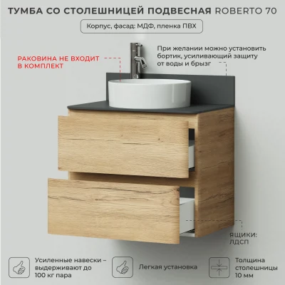 Тумба со столешницей подвесная Итана Roberto 70 с выдвижными ящиками Дуб Мавелла Голд