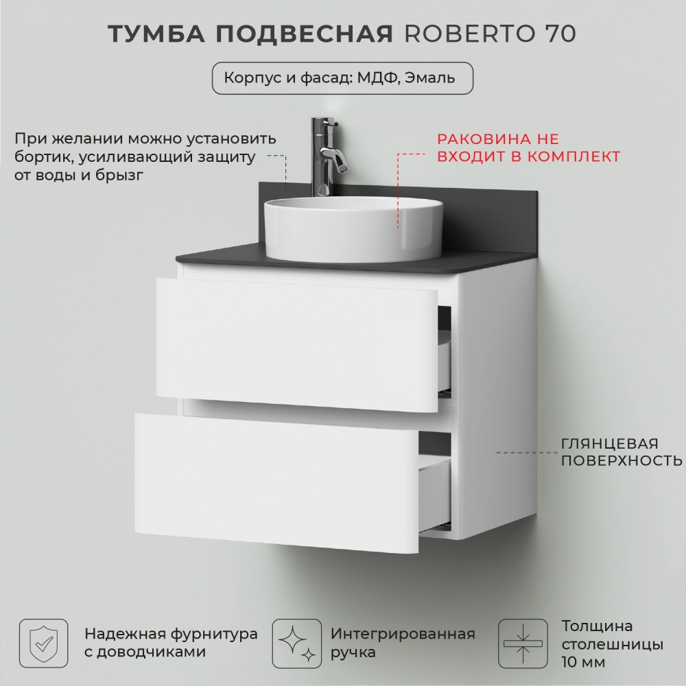 Тумба со столешницей подвесная Итана Roberto 70 с выдвижными ящиками Эмаль Белый Глянец