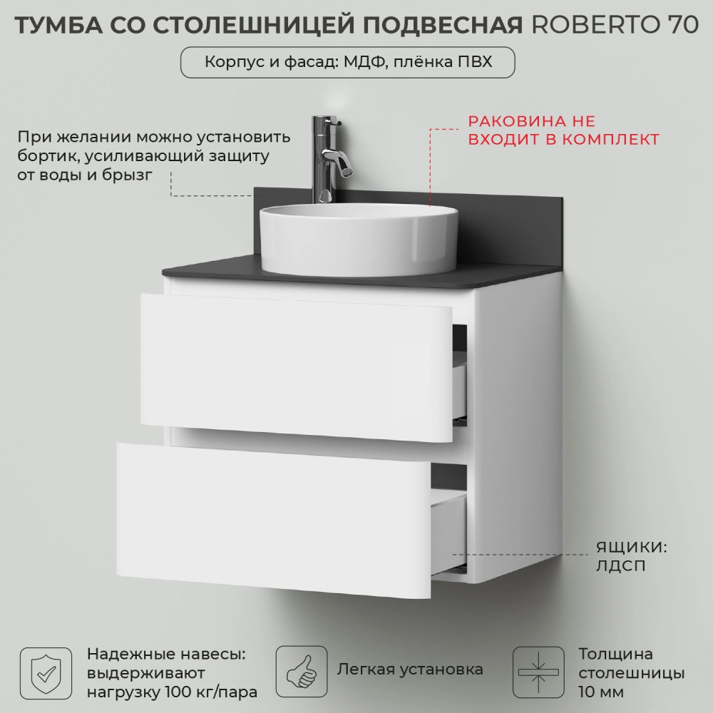 Тумба со столешницей подвесная Итана Roberto 70 с выдвижными ящиками Пленка Белый глянец