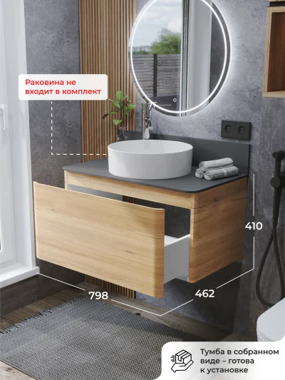 Тумба со столешницей подвесная Итана Roberto 80 с выдвижным ящиком Дуб Мавелла Голд