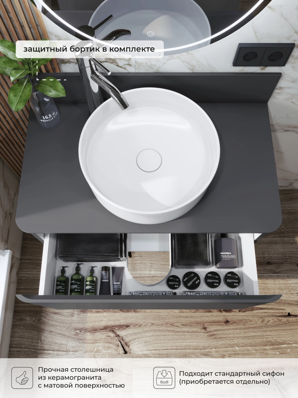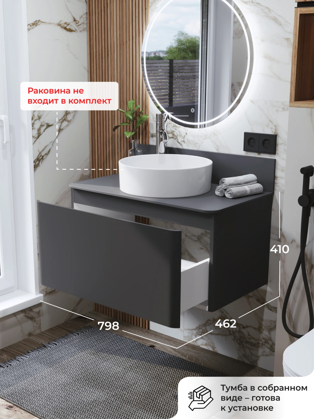 Тумба со столешницей подвесная Итана Roberto 80 с выдвижным ящиком Графит