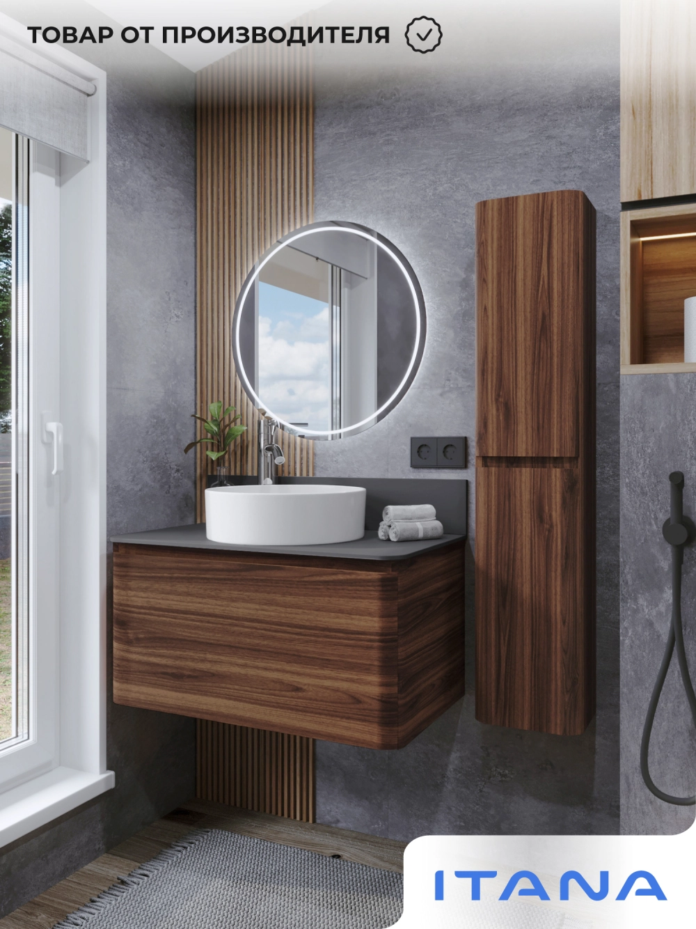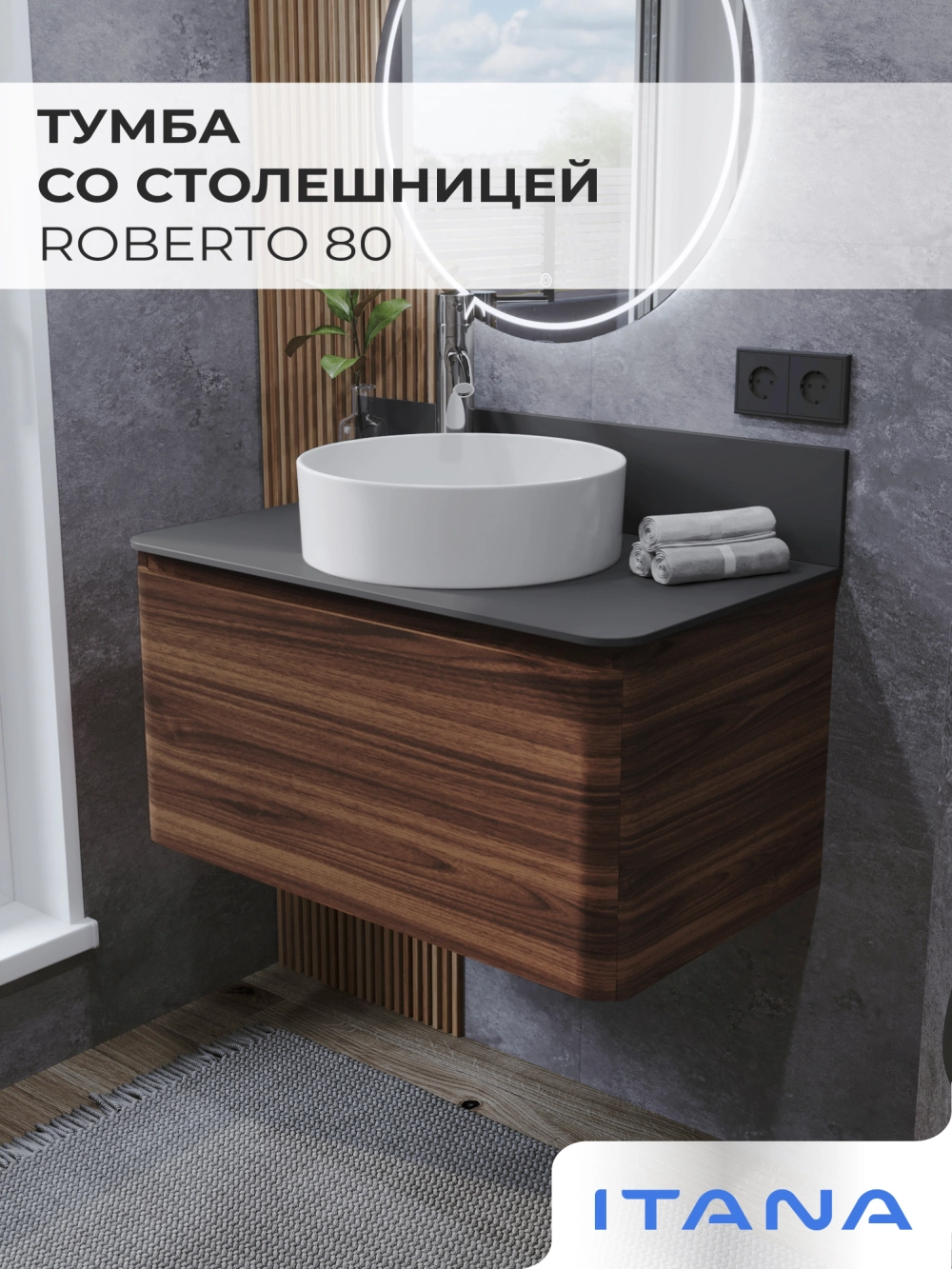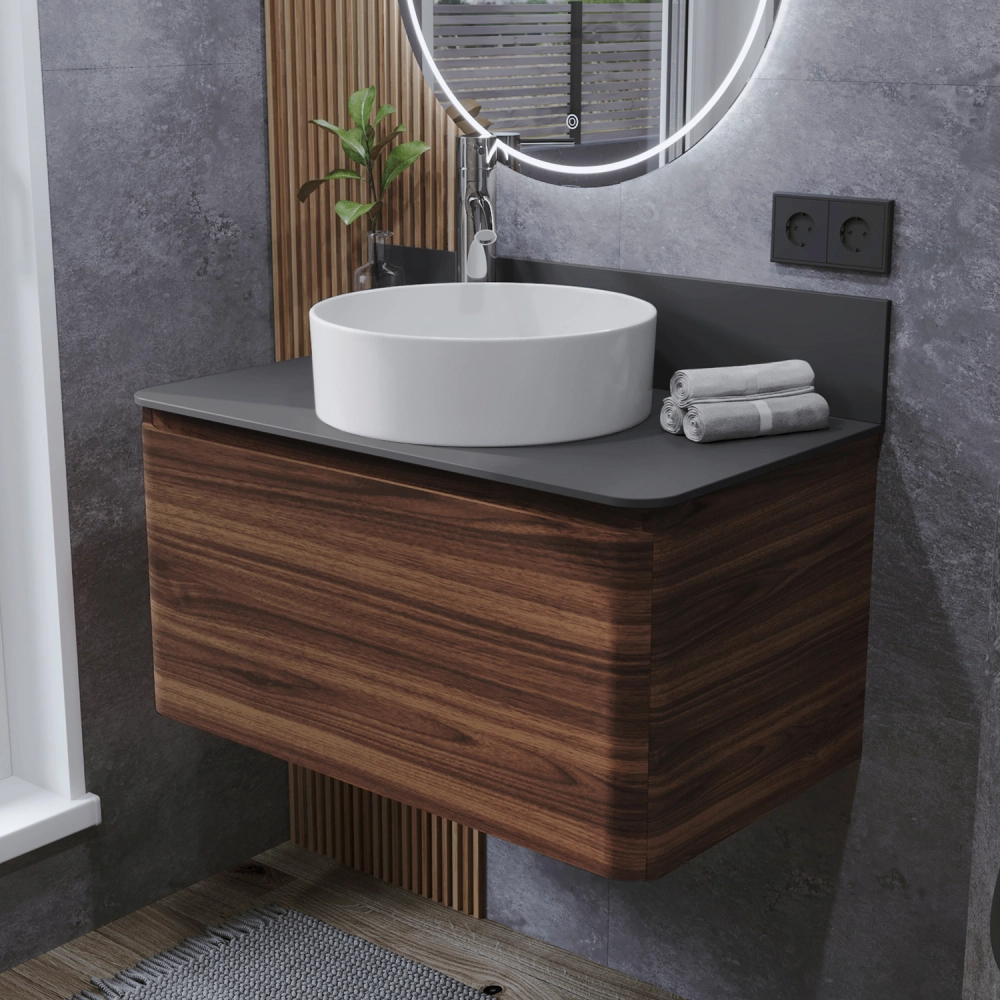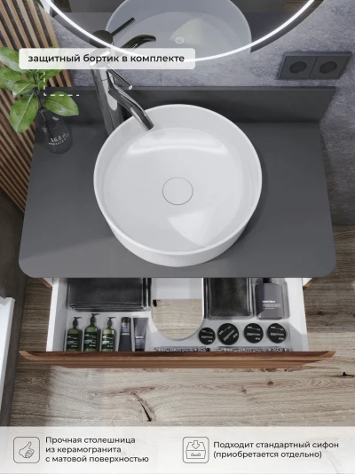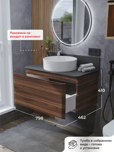 Тумба со столешницей подвесная Итана Roberto 80 с выдвижным ящиком Орех Пекан шоколад стронг