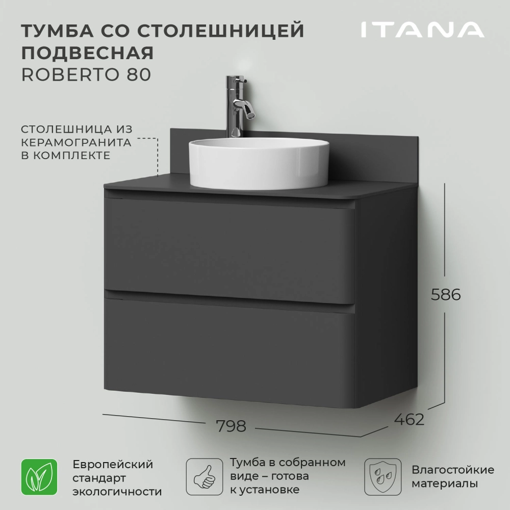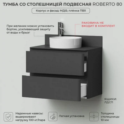 Тумба со столешницей подвесная Итана Roberto 80 с выдвижными ящиками Графит