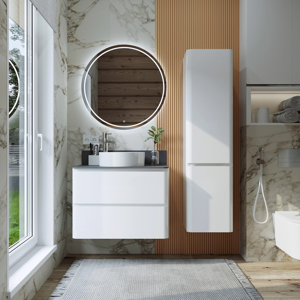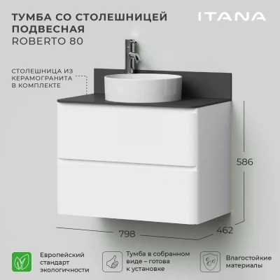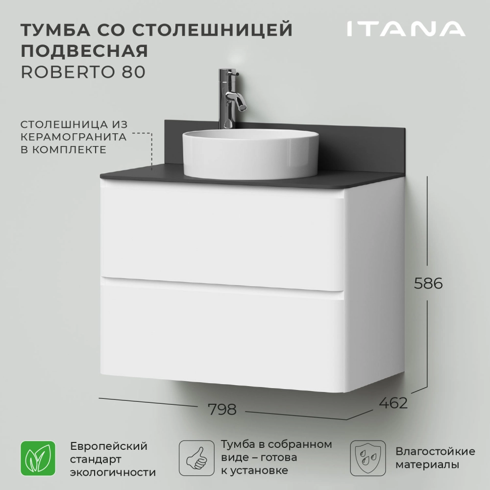 Тумба со столешницей подвесная Итана Roberto 80 с выдвижными ящиками Пленка Белый глянец