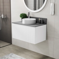 Подвесная тумба со столешницей ИТАНА Кейт 80 станет идеальным дополнением для вашей ванной комнаты, сочетая в себе стильный дизайн и функциональность. Коллекция Кейт - воплотила в себе тренд на фактурные фасады. Идеальный "рубчик" - простое и стильное дизайнерское решение для декорирования фасадов - эта мебель бесспорно станет украшением современной ванной комнаты. Элегантная подвесная конструкция позволяет максимально эффективно использовать пространство, создавая ощущение легкости и визуальной свободы в интерьере. Благодаря компактным габаритам тумба идеально подходит даже для небольших ванных комнат, при этом предоставляя достаточно места для хранения необходимых принадлежностей. Тумба изготовлена из высококачественных материалов, гарантируя долговечность и надежность эксплуатации. Удобные фрезерованные ручки, качественная фурнитура с доводчиками, вместительность - мы продумали все, чтобы тумба под раковину была не просто красивой, но еще и функциональной, приятной в использовании. Ее конструкция позволяет легко поддерживать порядок в ванной, ведь все мелочи будут аккуратно убраны. Столешница выполнена из керамогранита, обладая устойчивостью к механическим повреждениям и влиянию химических средств. Стильный декор тумбы со столешницей добавляет изюминку в общий дизайн, вписываясь в современные и классические интерьеры. Подвесная тумба для ванной ИТАНА Кейт 80 — это также безопасность и удобство в уборке, так как свободное пространство под ней позволяет легко очистить пол. Безупречное сочетание столешницы с тумбой подчеркивает общий стиль вашей ванной комнаты, делая ее уютной и функциональной. Для точного выбора тумбочки со столешницей в ванную комнату рекомендуем обратиться к схеме замеров, которая находится на фото в карточке товара, размеры изделия могут отличаться +/-1 см в связи со спецификой производства. Тумба для ванной доставляется в предварительно собранном виде, надежно упакована.