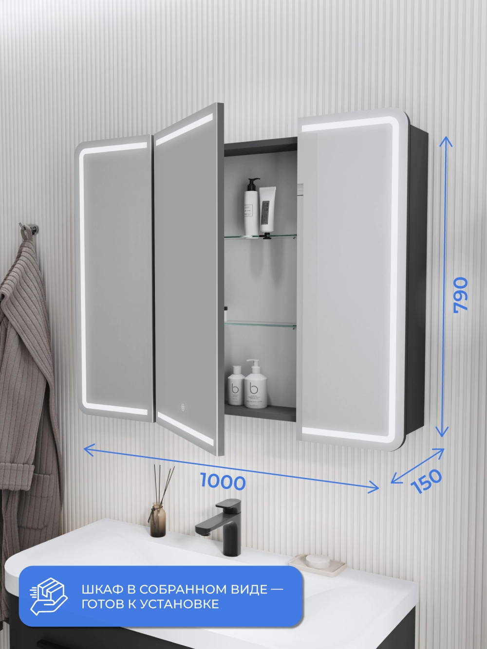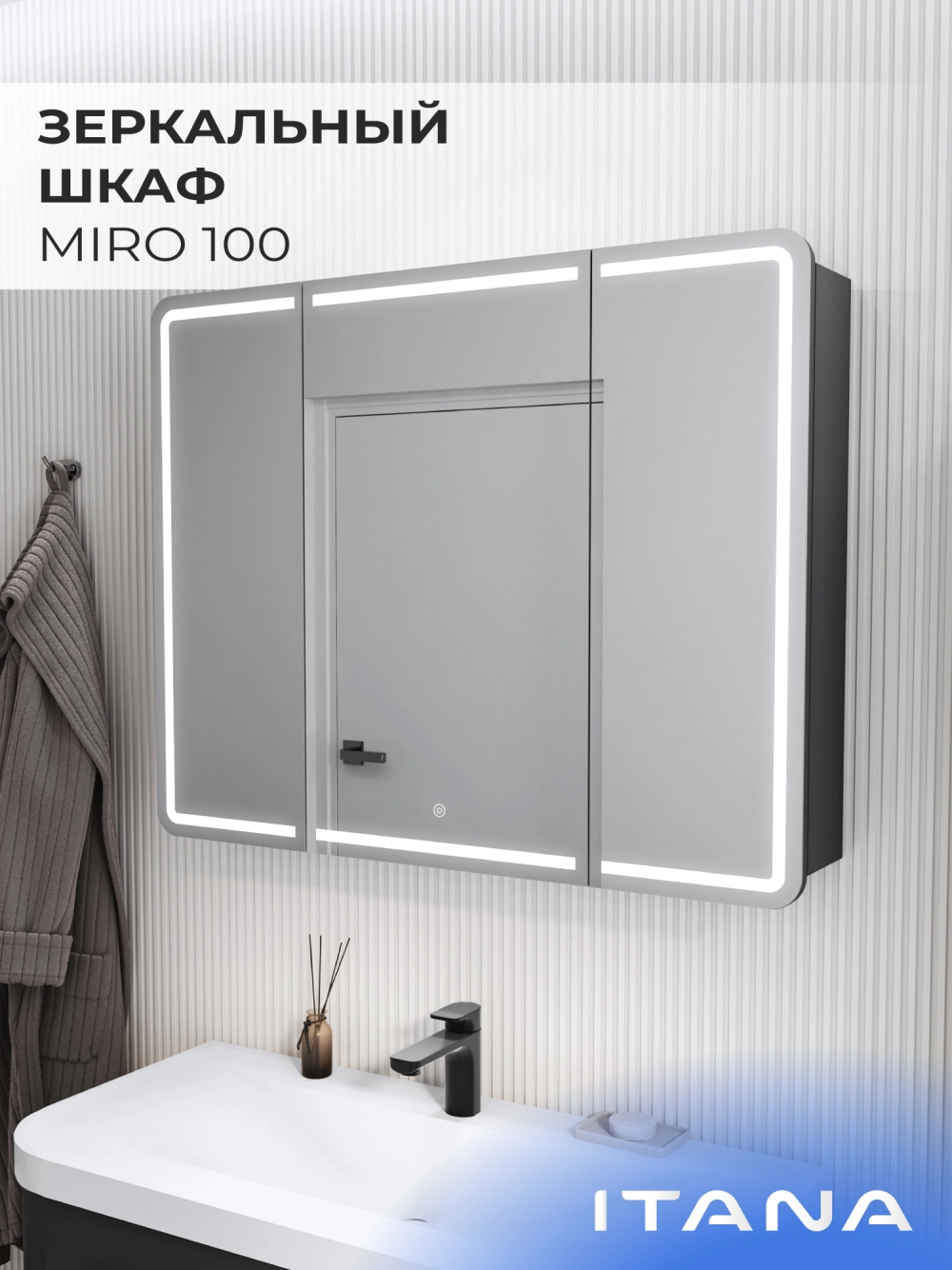 Зеркальный шкаф с подсветкой Итана Miro 100 трехдверный Серый темный