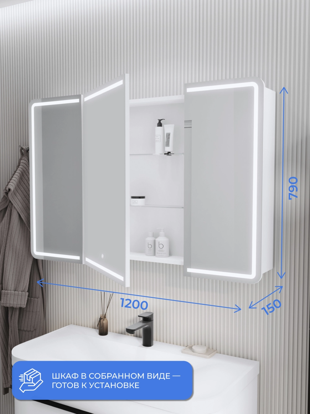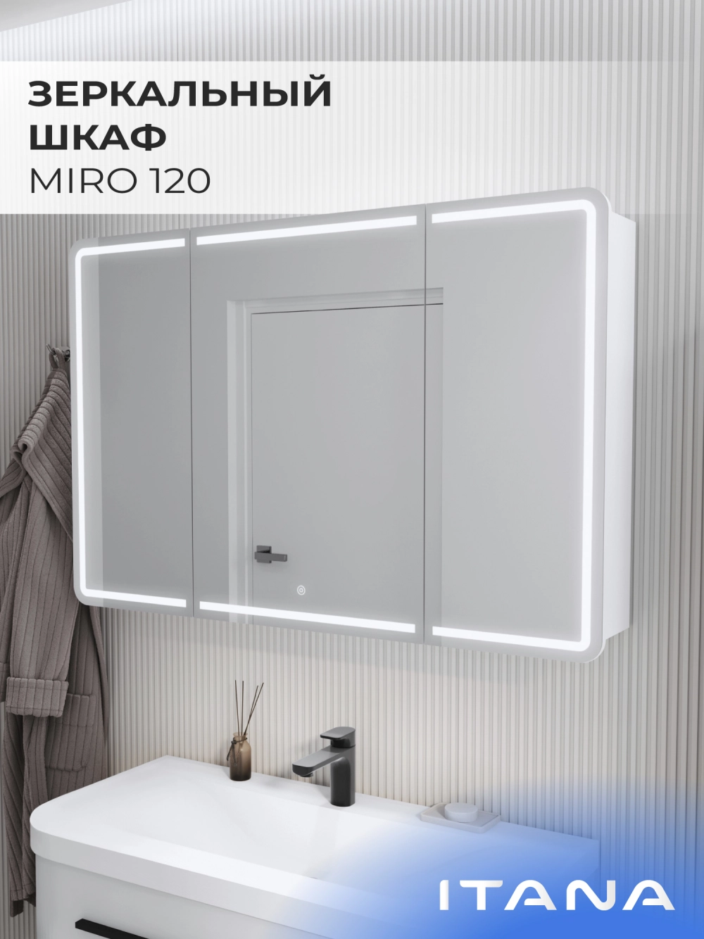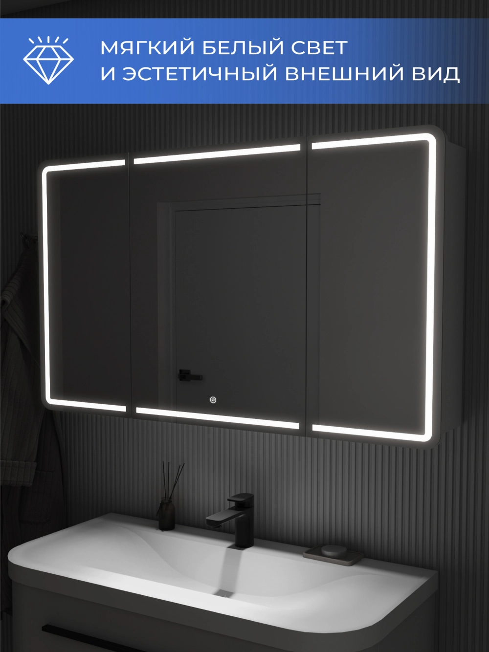 Зеркальный шкаф с подсветкой Итана Miro 120 трехдверный Белый