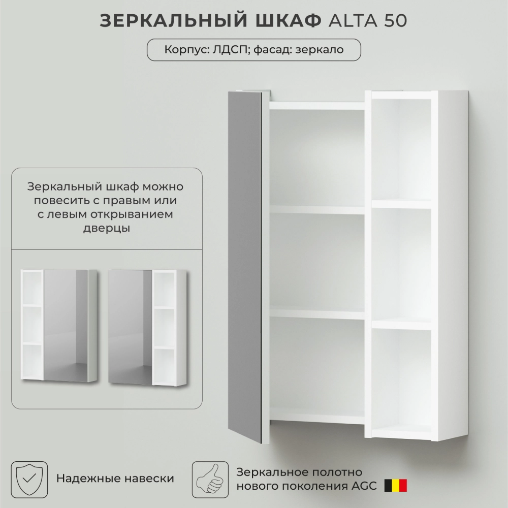 Зеркальный шкаф Итана Alta 50 Белый Скандинавский