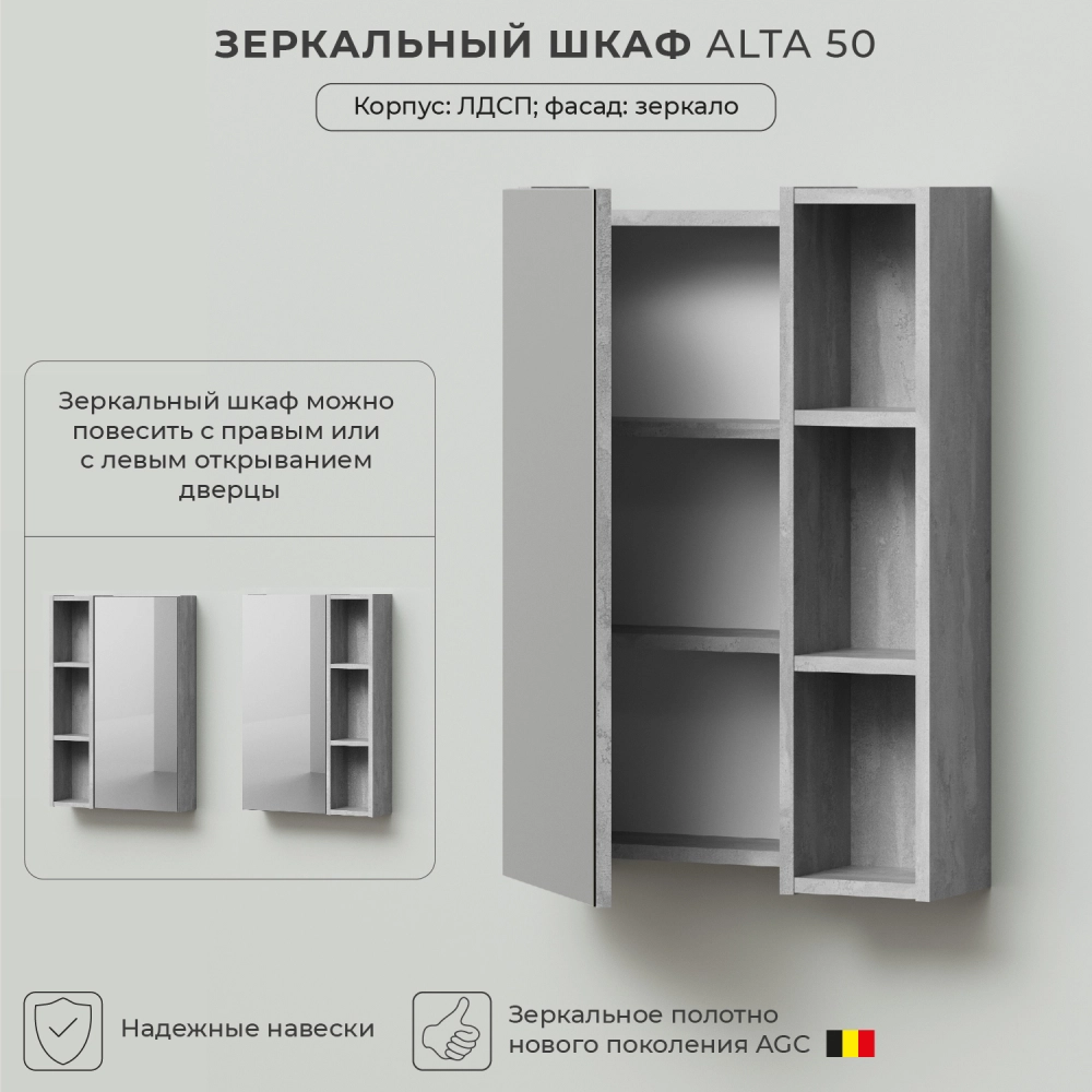 Зеркальный шкаф Итана Alta 50 Бетонный Камень