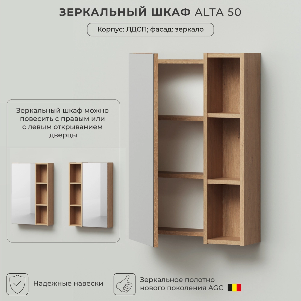 Зеркальный шкаф Итана Alta 50 Дуб Корбридж натуральный