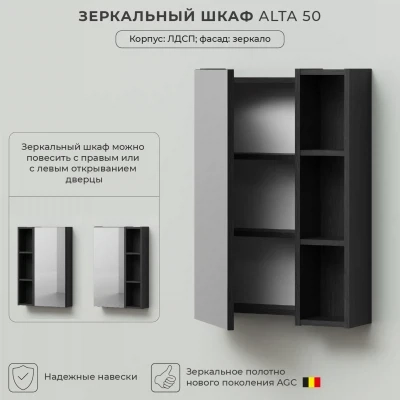 Зеркало-шкаф в ванную Alta 50 поможет создать комфортные условия в ванной комнате. Зеркало в ванную с размерами 500х160х750 мм. позволяют разместить шкаф в любом пространстве, делая его идеальным решением как для больших, так и небольших ванных комнат. Корпус и фасад изготовлены из ламинированного ДСП. Этот шкаф для ванной оснащен зеркалом, что делает его не только практичным, но и удобным для повседневного использования. Вместительные полки внутри и снаружи шкафа позволят хранить все необходимые аксессуары и косметические средства в порядке. Удобная система крепления позволяет быстро и надежно установить шкаф на стену. Для точного выбора шкафа с зеркалом в ванную комнату рекомендуем обратиться к схеме замеров, которая находится на фото в карточке товара, размеры изделия могут отличаться +/-1 см в связи со спецификой производства. Зеркальный шкаф в ванную доставляется в предварительно собранном виде, надежно упакован.