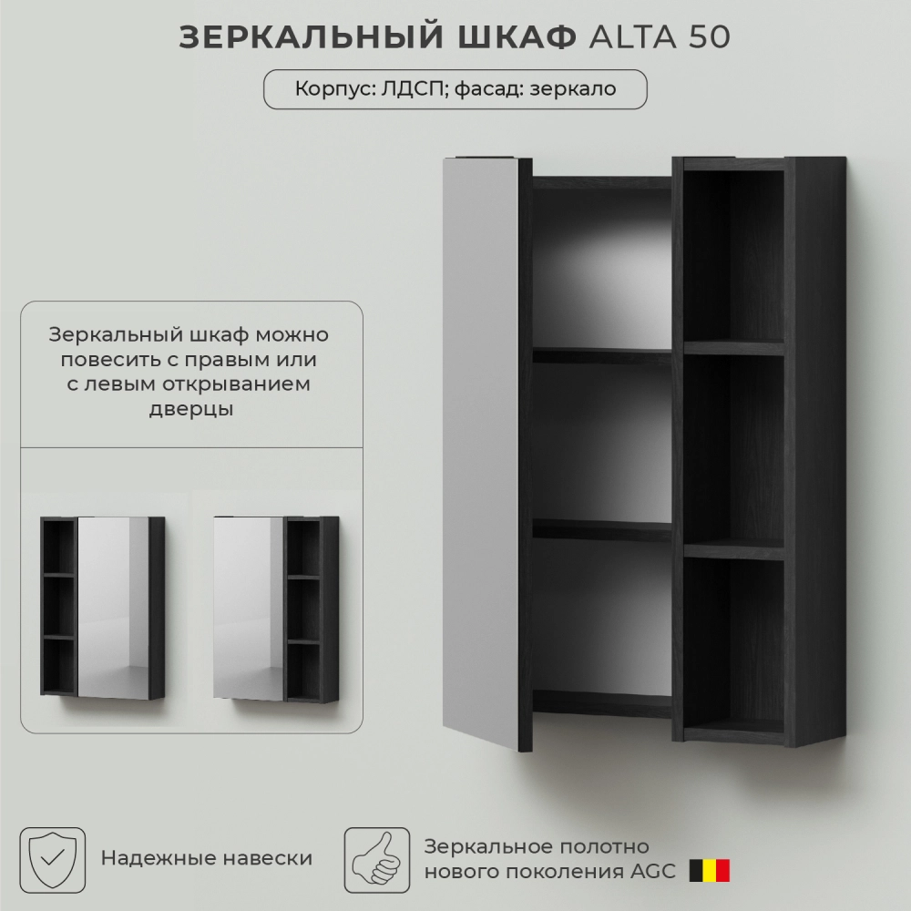 Зеркальный шкаф Итана Alta 50 Морское дерево Карбон