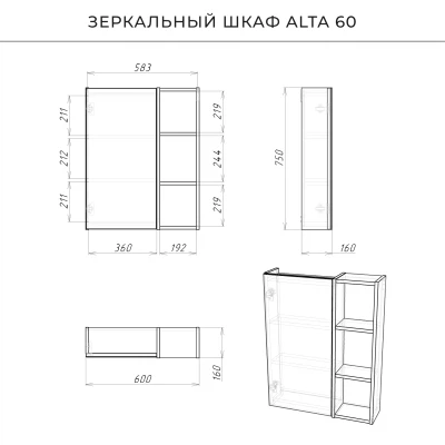 Зеркало-шкаф в ванную Alta 60 поможет создать комфортные условия в ванной комнате. Зеркало в ванную с размерами 600х160х750 мм. позволяют разместить шкаф в любом пространстве, делая его идеальным решением как для больших, так и небольших ванных комнат. Корпус и фасад изготовлены из ламинированного ДСП. Этот шкаф для ванной оснащен зеркалом, что делает его не только практичным, но и удобным для повседневного использования. Вместительные полки внутри и снаружи шкафа позволят хранить все необходимые аксессуары и косметические средства в порядке. Удобная система крепления позволяет быстро и надежно установить шкаф на стену. Для точного выбора шкафа с зеркалом в ванную комнату рекомендуем обратиться к схеме замеров, которая находится на фото в карточке товара, размеры изделия могут отличаться +/-1 см в связи со спецификой производства. Зеркальный шкаф в ванную доставляется в предварительно собранном виде, надежно упакован.