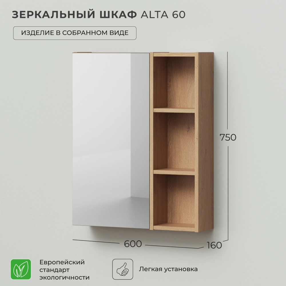 Зеркальный шкаф Итана Alta 60 Дуб Корбридж натуральный