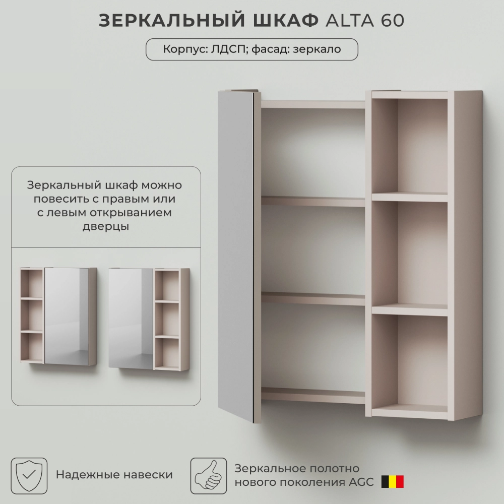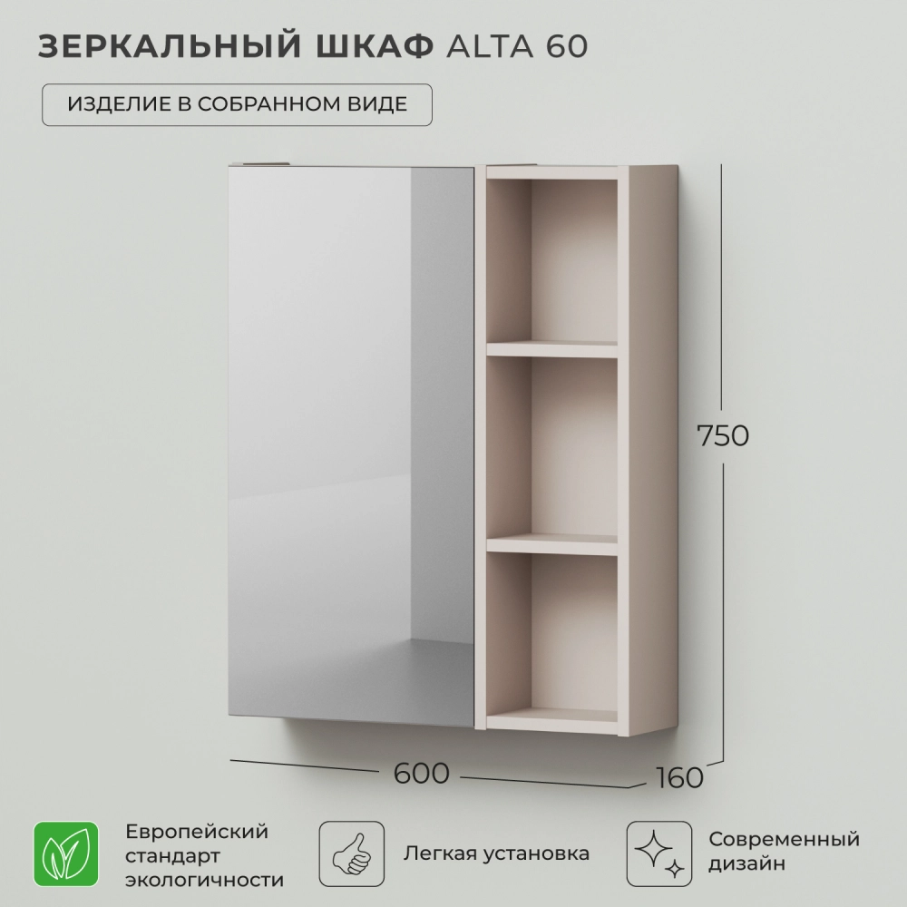 Зеркальный шкаф Итана Alta 60 Кашемир