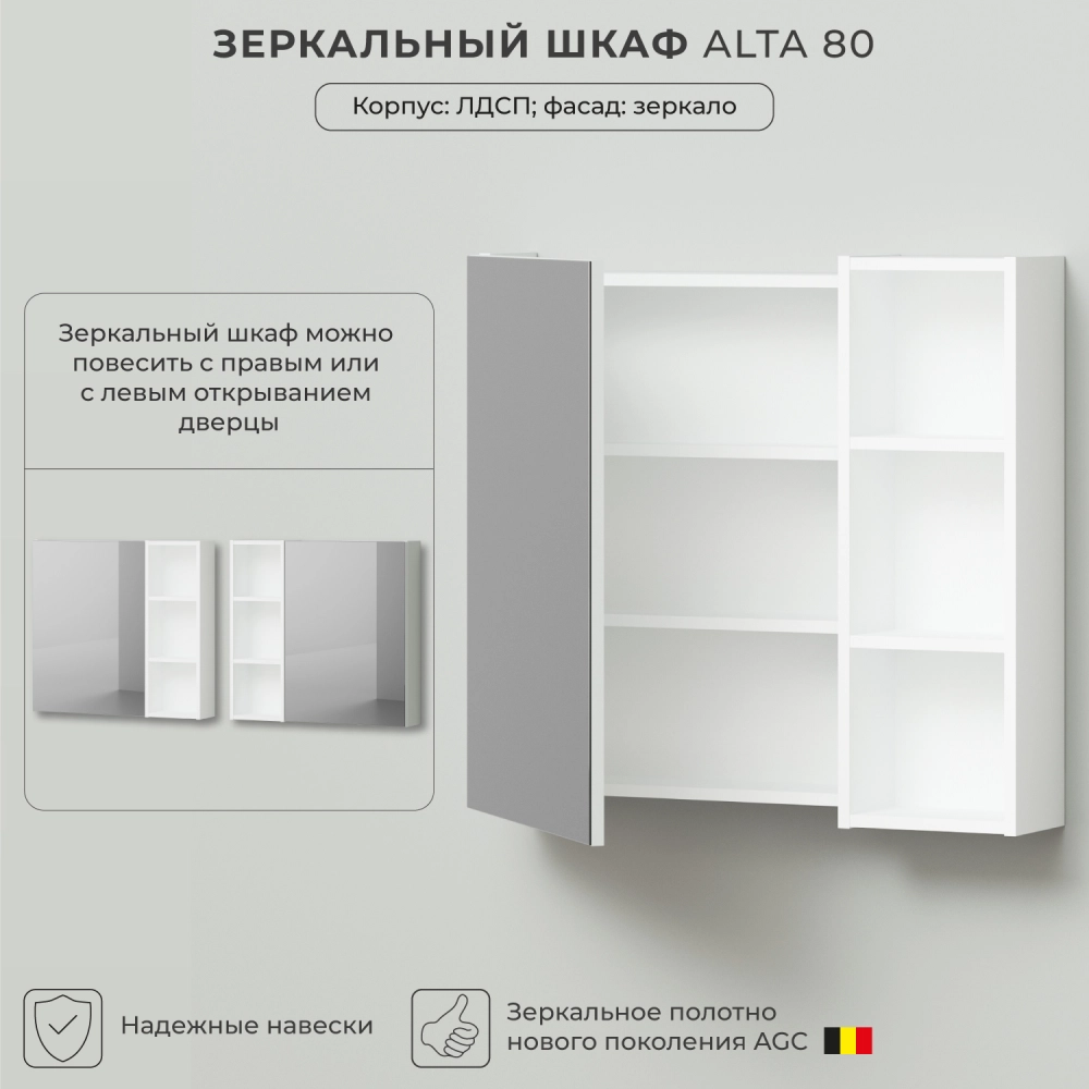 Зеркальный шкаф Итана Alta 80 Белый Скандинавский