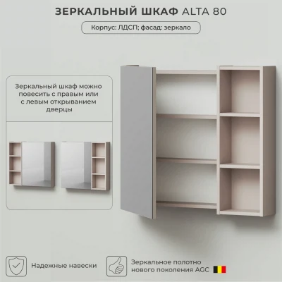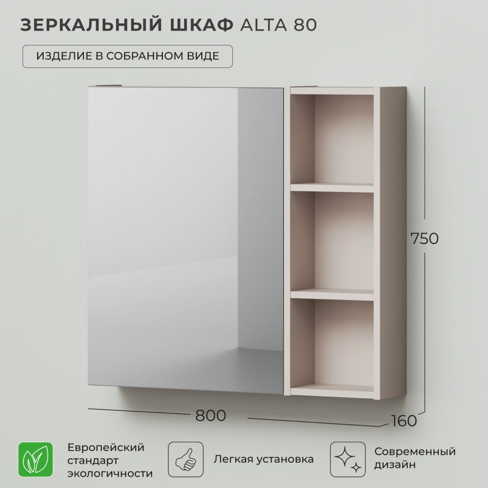 Зеркальный шкаф Итана Alta 80 Кашемир