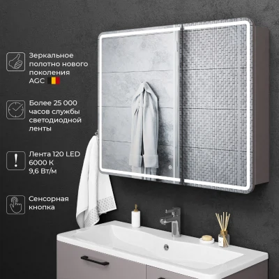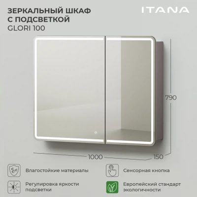 Зеркальный шкаф с подсветкой Итана Glori 100 Амаретти