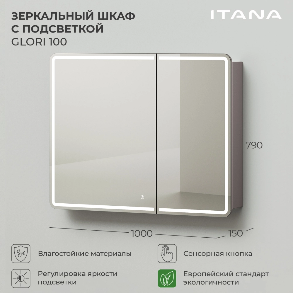 Зеркало-шкаф Итана Glori 100 с подсветкой соединяет в себе стильный дизайн и практичность использования. Размеры изделия составляют 1000х150х790 мм, что обеспечивает достаточное пространство для хранения различных ванных принадлежностей. Особенностью данного зеркала является интегрированная подсветка, которая не только создает комфортные условия для нанесения макияжа или бритья, но и добавляет уютную атмосферу за счет мягкого и приятного света. Зеркальный шкаф в ванную оборудован одной дверцей, что обеспечивает удобный доступ ко всем полочкам внутри. Настенное крепление позволяет разместить его на удобной для вас высоте. Благодаря встроенной подсветке, вам не потребуется дополнительное освещение возле зеркала – это особенно актуально для тех, кто ценит удобство и экономию пространства. Для точного выбора шкафа с зеркалом в ванную комнату рекомендуем обратиться к схеме замеров, которая находится на фото в карточке товара, размеры изделия могут отличаться +/-1 см в связи со спецификой производства. Зеркальный шкаф с подсветкой доставляется в предварительно собранном виде, надежно упакован.
