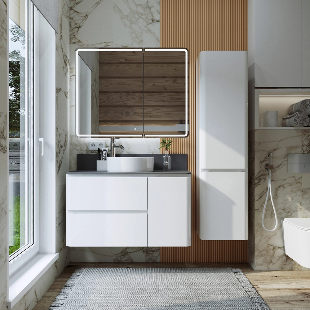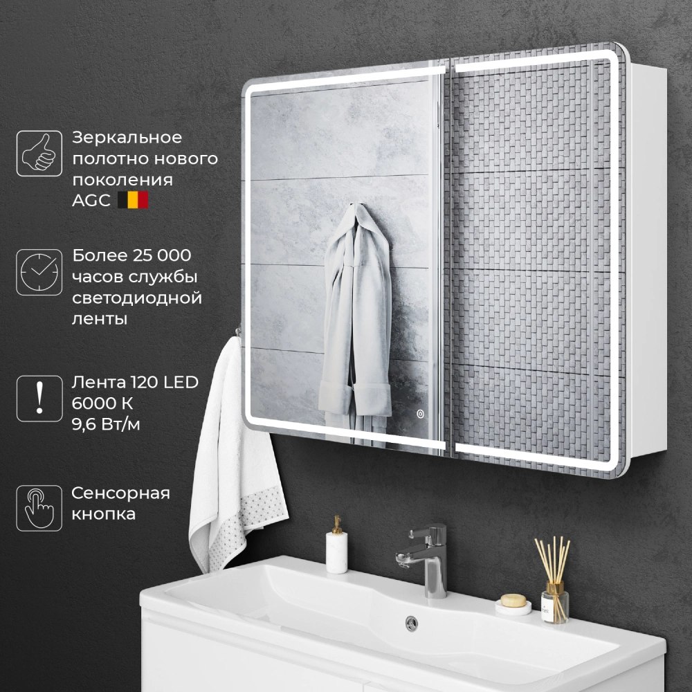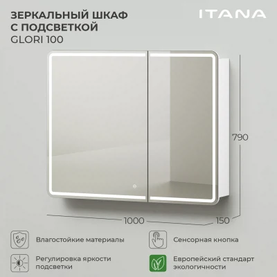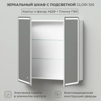 Зеркальный шкаф с подсветкой Итана Glori 100 Белый глянец