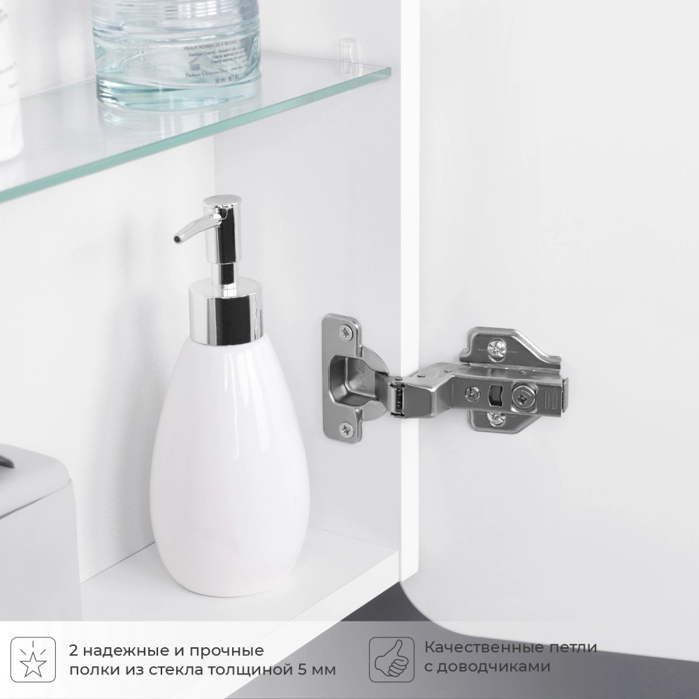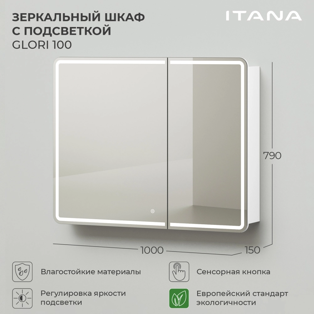 Зеркало-шкаф Итана Glori 100 с подсветкой соединяет в себе стильный дизайн и практичность использования. Размеры изделия составляют 1000х150х790 мм, что обеспечивает достаточное пространство для хранения различных ванных принадлежностей. Особенностью данного зеркала является интегрированная подсветка, которая не только создает комфортные условия для нанесения макияжа или бритья, но и добавляет уютную атмосферу за счет мягкого и приятного света. Зеркальный шкаф в ванную оборудован одной дверцей, что обеспечивает удобный доступ ко всем полочкам внутри. Настенное крепление позволяет разместить его на удобной для вас высоте. Благодаря встроенной подсветке, вам не потребуется дополнительное освещение возле зеркала – это особенно актуально для тех, кто ценит удобство и экономию пространства. Для точного выбора шкафа с зеркалом в ванную комнату рекомендуем обратиться к схеме замеров, которая находится на фото в карточке товара, размеры изделия могут отличаться +/-1 см в связи со спецификой производства. Зеркальный шкаф с подсветкой доставляется в предварительно собранном виде, надежно упакован.